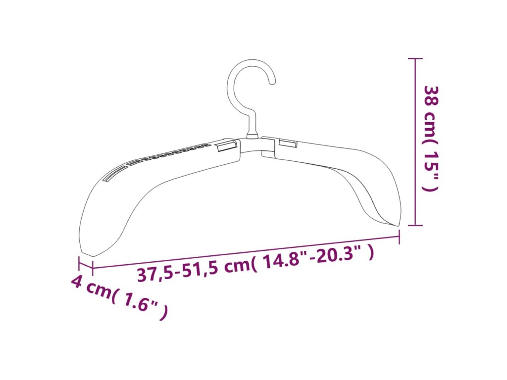 - Nastavitelná délka: Toto ramínko na šaty lze vysunout na délku od 37,5 do 51,5 cm, což umožňuje zavěšení různě velkého oblečení.