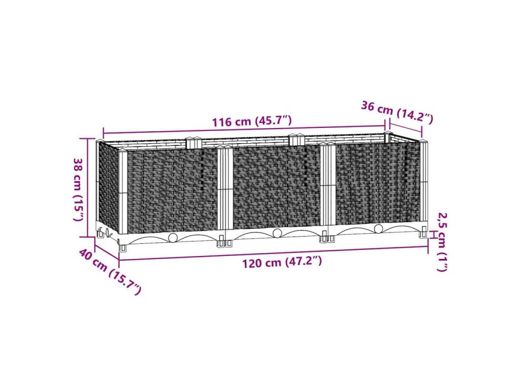 Vyvýšený záhon 120 x 40 x 38 cm polypropylen 316517