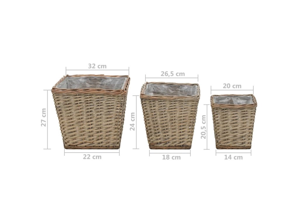 Balení obsahuje 3 květináče z pravého ratanu a různých velikostí. Důležité upozornění: Jedná se o ručně vyráběné produkty, každý z nich je tudíž zcela jedinečný. Výběr kusů k dodání je náhodný.