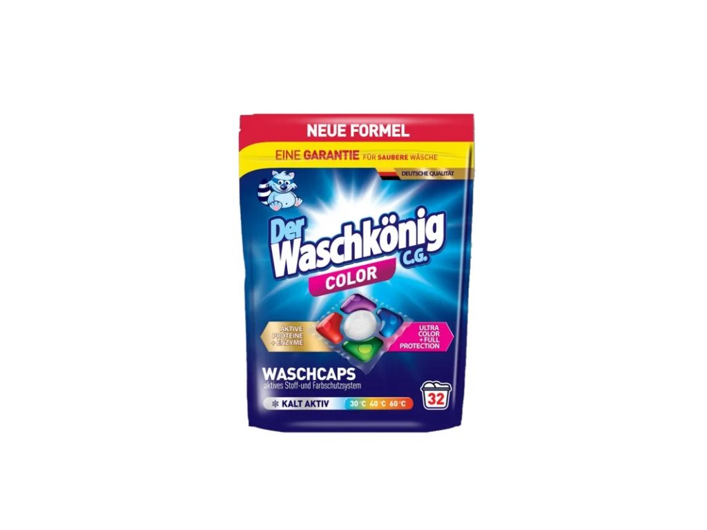 Waschkonig Color 5-komorové gelové-práškové kapsle 32ks x 19g Novinka! Inovativní forma kapslí: prášek a gel spojují své vlastnosti pro ještě lepší výsledky praní.