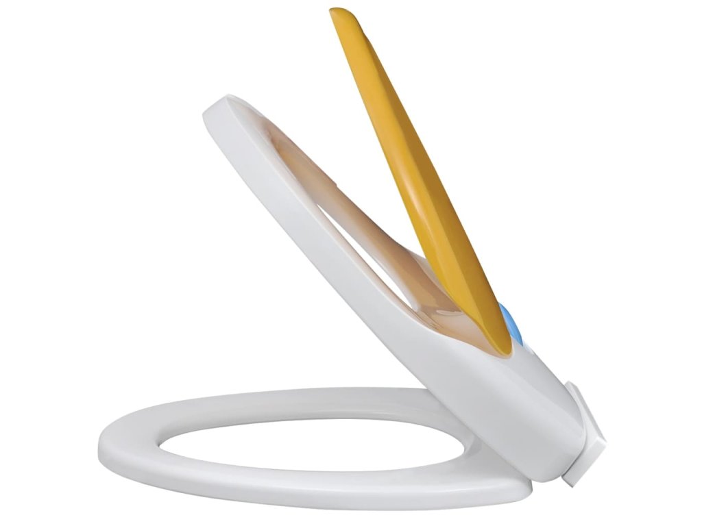 Dětské sedátko má velikost malého nočníku, takže se díky němu děti naučí používat běžnou toaletu beze strachu, že by do ní mohly spadnout. WC sedátko disponuje funkcí pomalého sklápění (soft-close), což znamená, že se zavírá pomalu a tiše. Je vyrobeno z pevného polypropylenu, takže je velmi odolné. Montáž i údržba jsou navíc snadné.