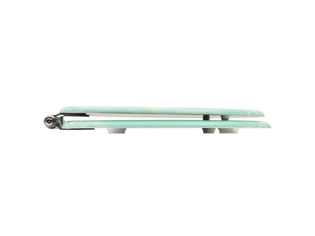 Sedátko i víko z MDF jsou mimořádně pevné a odolné. Panty jsou vyrobené z extrémně silné slitiny chromu a zinku. Záchodové prkénko disponuje funkcí pomalého sklápění, což znamená, že se sklopí zvolna a tiše.