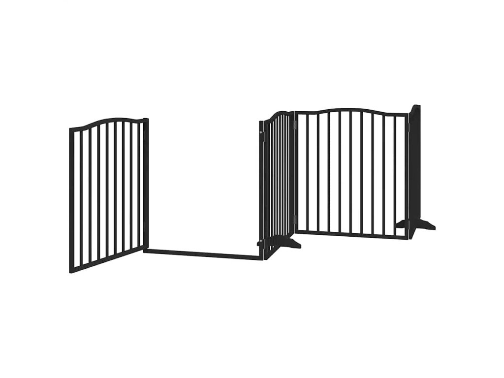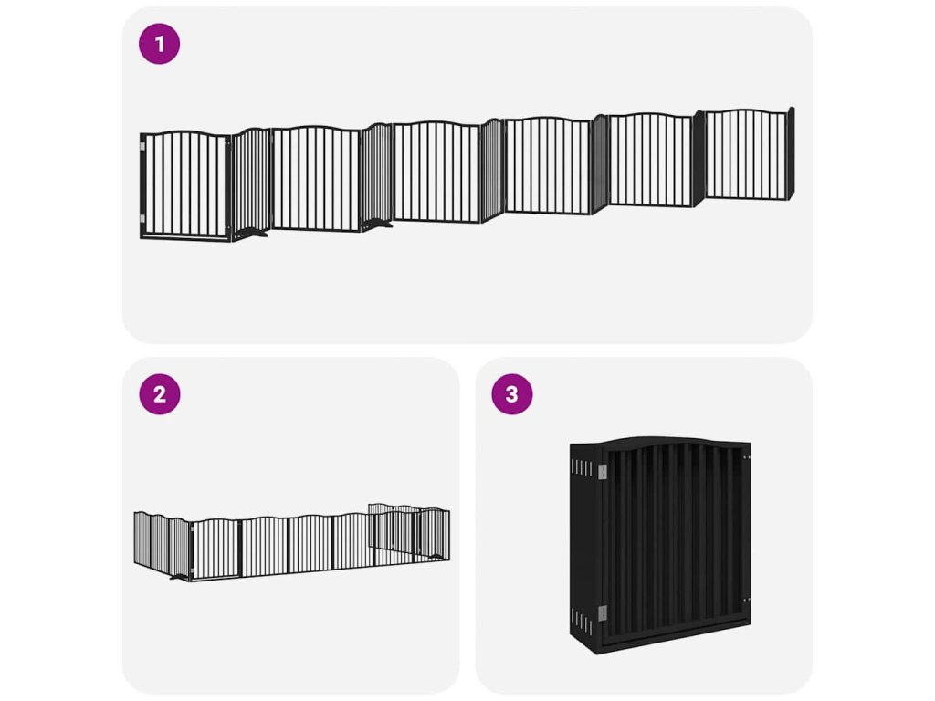 Zábrana pro psy s dvířky skládací 12 panelů černá 960 cm topol 3155632