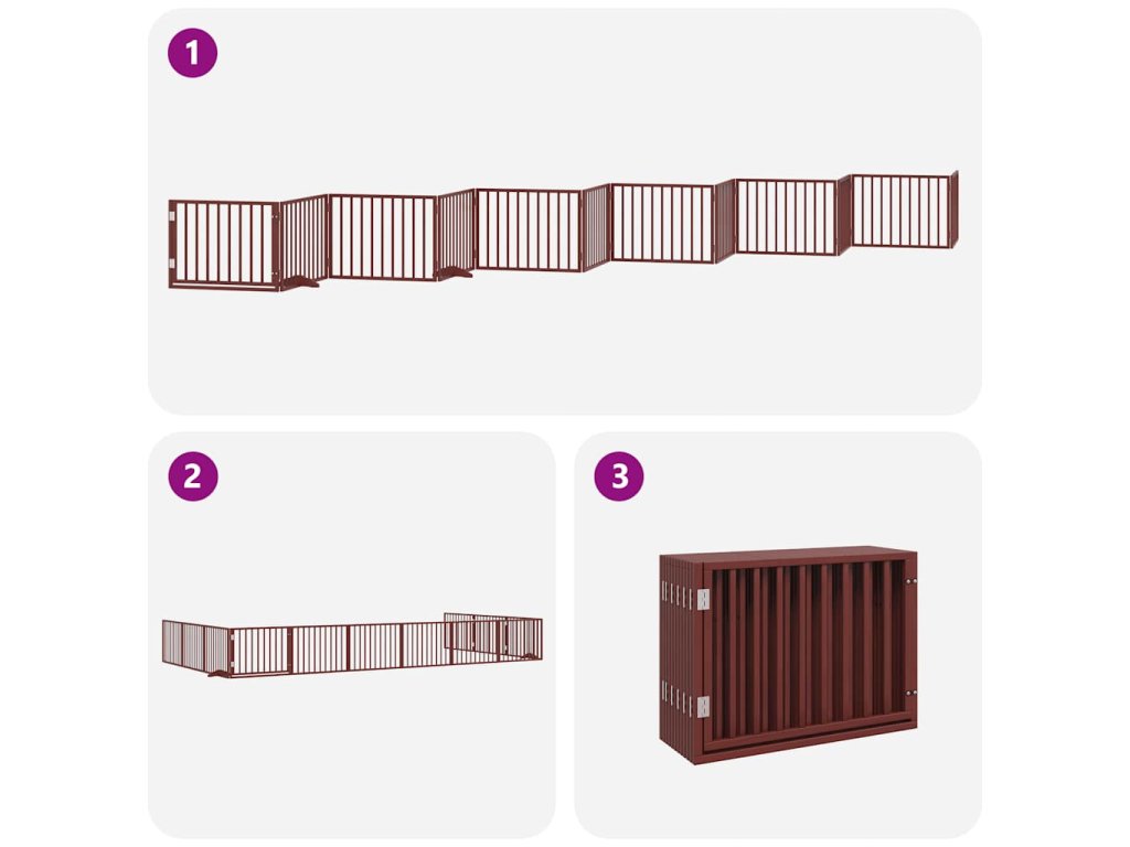 Zábrana pro psy s dvířky skládací 12 panelů hnědá 960 cm topol 3155580