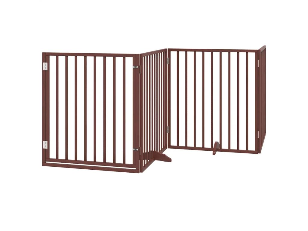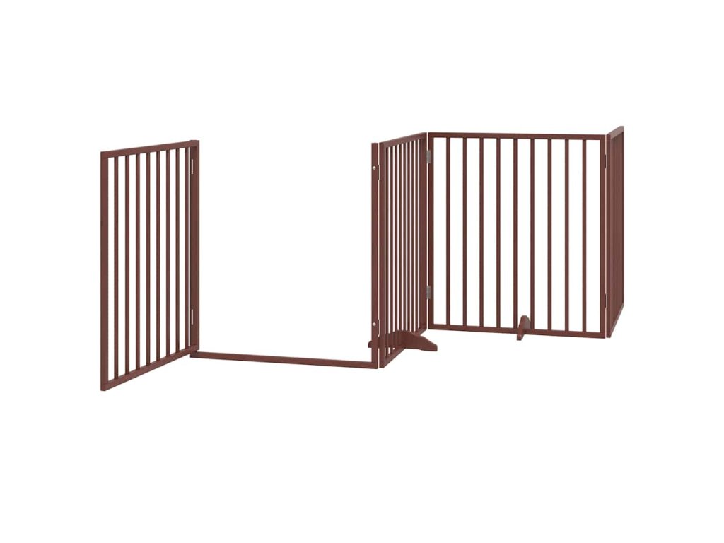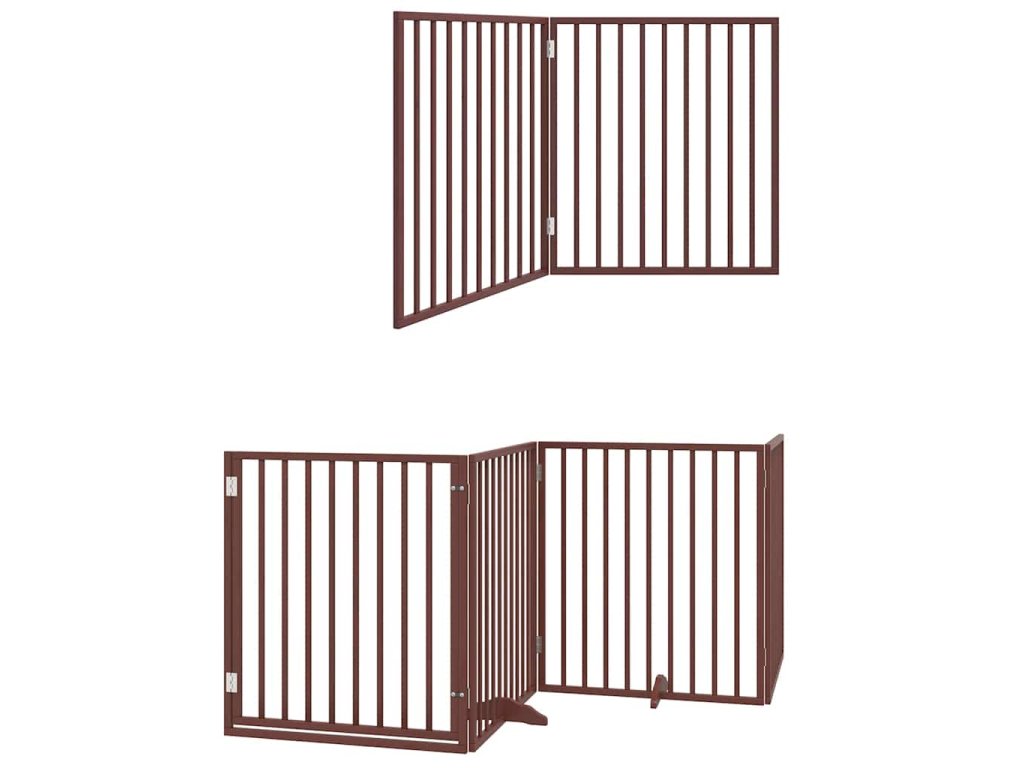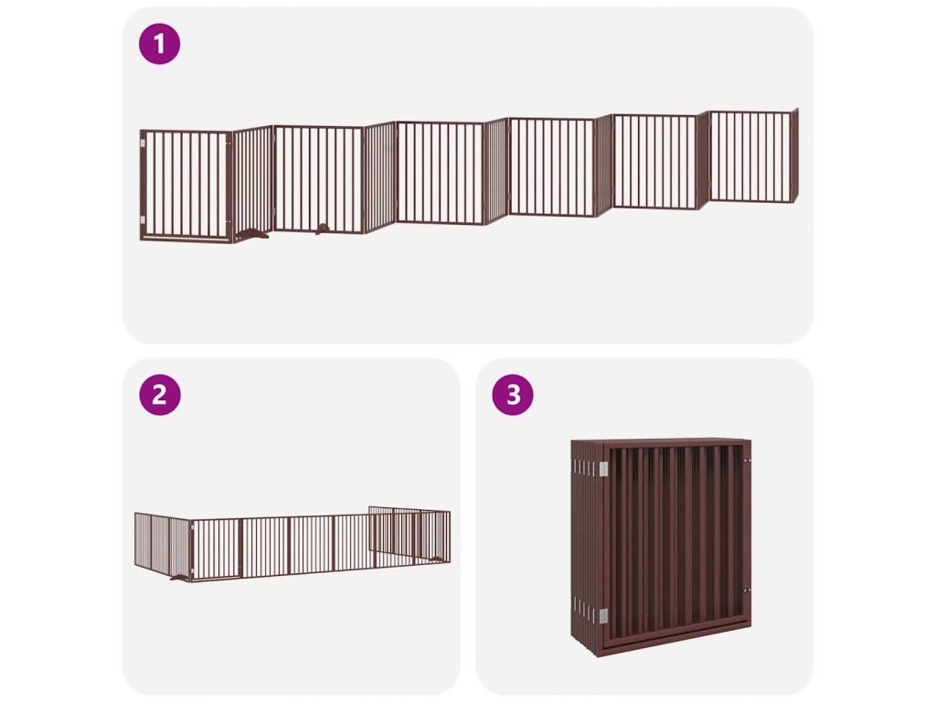 Zábrana pro psy s dvířky skládací 12 panelů hnědá 960 cm topol 3155584
