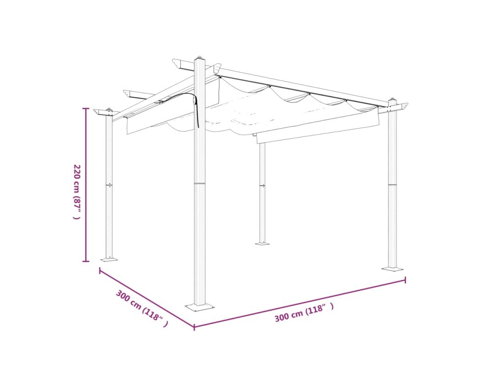 Tento venkovní altán má ocelový rám s práškovým nástřikem, takže je robustní a stabilní. Je vybaven zatahovací střechou potaženou PA, která je odolná vůči UV záření a vodě. Střechu můžete snadno nastavit do ideální polohy ovládací tyčkou. Otevřete ji, když si chcete užít slunce, nebo jí naopak zavřete, když zrovna preferujete úkryt a stín. Tento altán je perfektní volbou pro vaše outdoorové aktivity.