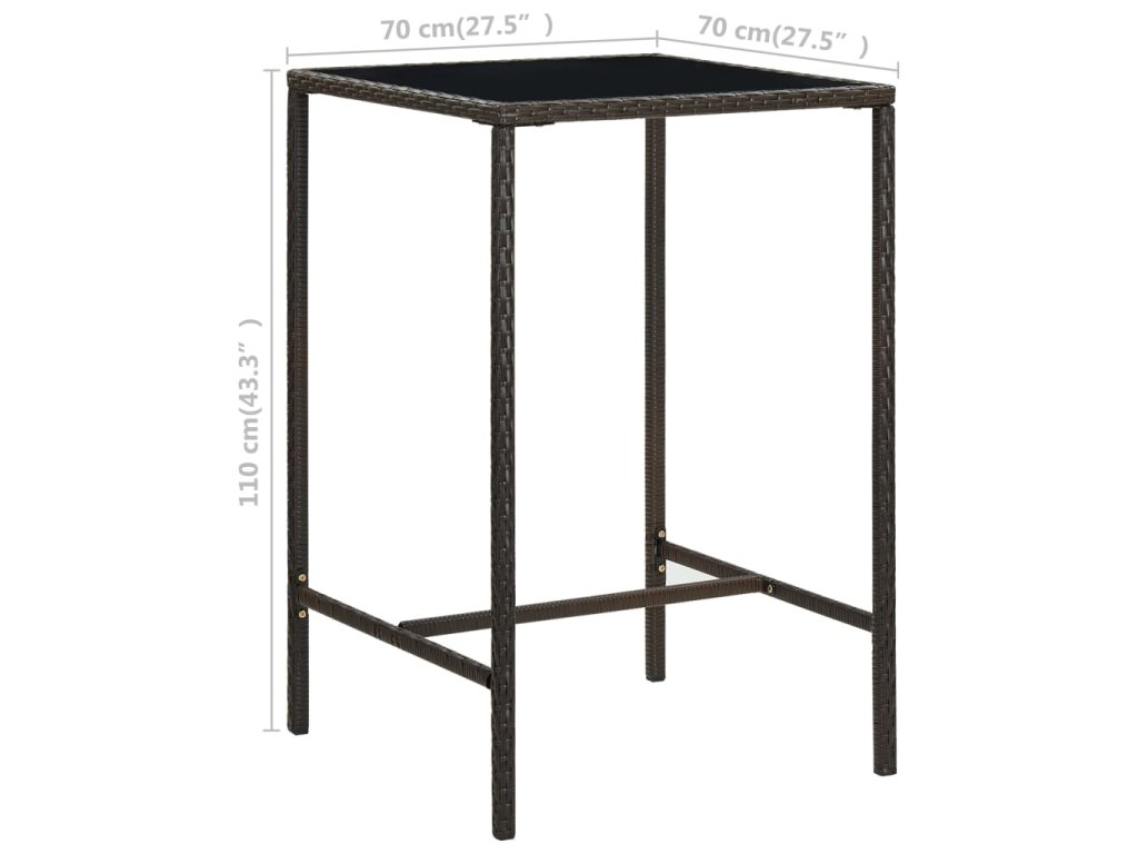 Zahradní barový stůl hnědý 70 x 70 x 110 cm polyratan a sklo 313457