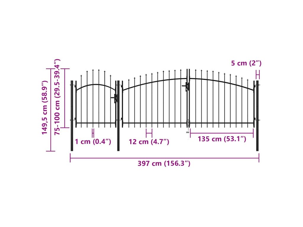 Elegantní zaoblený design naší brány je velmi atraktivní. Silné vodorovné výztuhy zpevňují její rám a zvyšují její bezpečnost. Naše brána tak tvoří nejen působivý vstup na váš pozemek, ale také spolehlivou bariéru. Je vyrobená z oceli a ošetřená práškovým lakem, který ji chrání před rzí a korozí. Zahradní brána je rovněž vybavená zámkem. Dodáváme ji spolu se třemi sloupky s pevnými závěsy pro snadnou instalaci. Součástí dodávky je též zemní otočná zarážka, která umožňuje zajistit obě křídla brány na místě pro větší bezpečnost. Tato branka je skvělou kombinací stylu, pevnosti a stability!