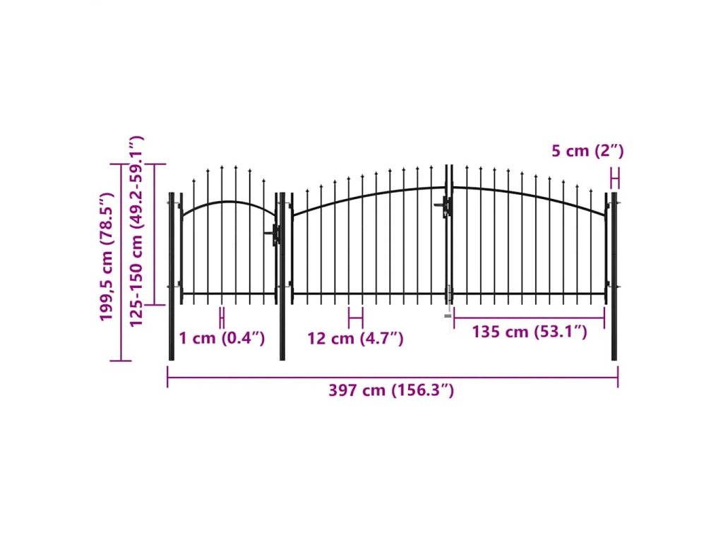 Elegantní zaoblený design naší brány je velmi atraktivní. Silné vodorovné výztuhy zpevňují její rám a zvyšují její bezpečnost. Naše brána tak tvoří nejen působivý vstup na váš pozemek, ale také spolehlivou bariéru. Je vyrobená z oceli a ošetřená práškovým lakem, který ji chrání před rzí a korozí. Zahradní brána je rovněž vybavená zámkem. Dodáváme ji spolu se třemi sloupky s pevnými závěsy pro snadnou instalaci. Součástí dodávky je též zemní otočná zarážka, která umožňuje zajistit obě křídla brány na místě pro větší bezpečnost. Tato branka je skvělou kombinací stylu, pevnosti a stability!