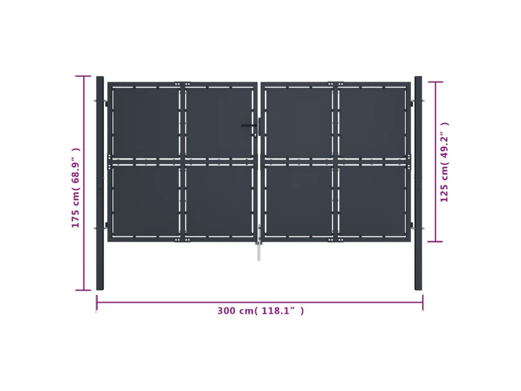 Zahradní brána ocel 300 x 125 cm antracitová 144525