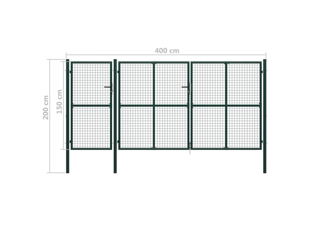Zahradní brána ocel 400 x 150 cm zelená 144313