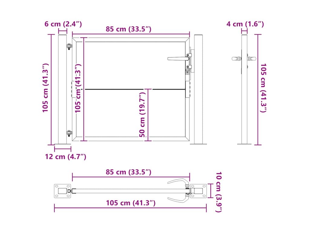 - Snadná montáž: Vstupní branka je dodávána se dvěma sloupky s přírubami a montážním příslušenstvím pro snadnou instalaci.