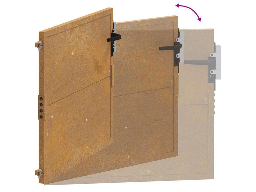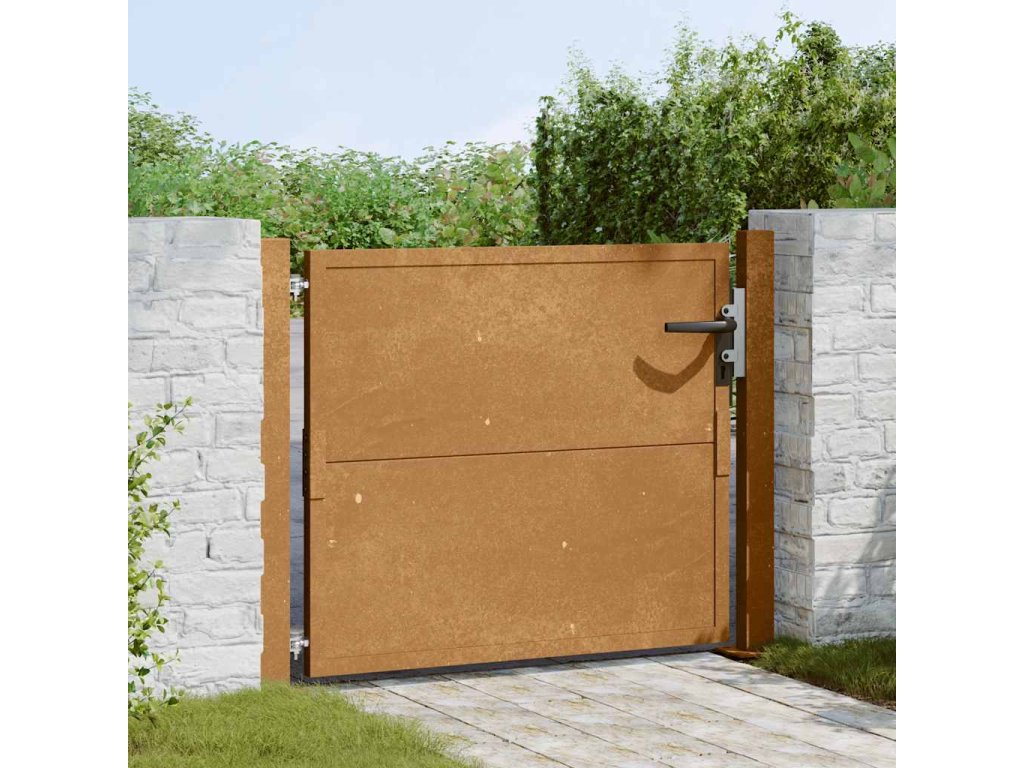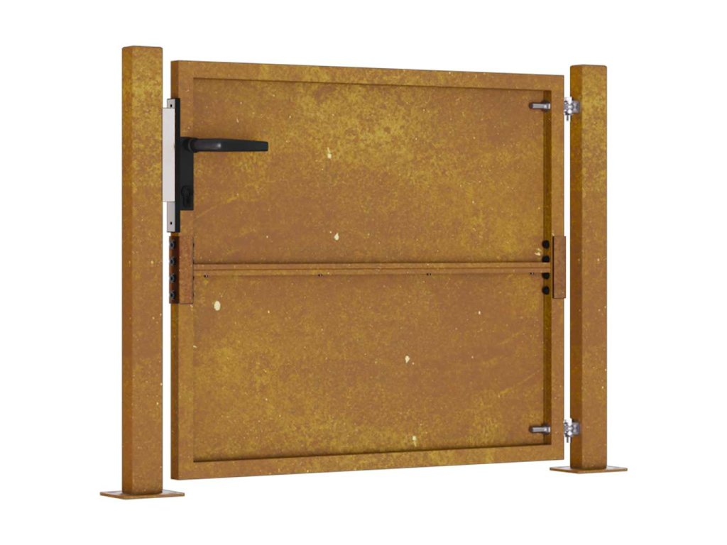 - Odolná konstrukce: Tato zahradní branka je vyrobená z cortenové oceli. Cortenová ocel, také známá jako povětrnostně odolná ocel. Je ze své podstaty antikorozní. Při prvním vystavení atmosférickým podmínkám se na ní vytvoří rezavá ochranná vrstva proti korozi. Nemusíte ji tedy natírat. Tím ušetříte náklady na údržbu a opravy. Výrazný hnědý odstín cortenové oceli jistě upoutá pozornost. Povětrnostně odolná ocel je výjimečně odolná a obstojí ve zkoušce času.