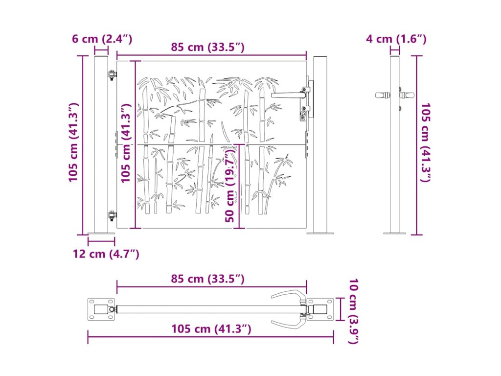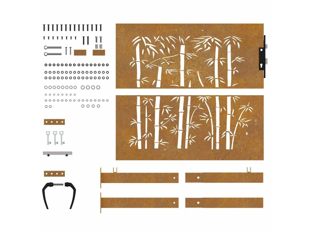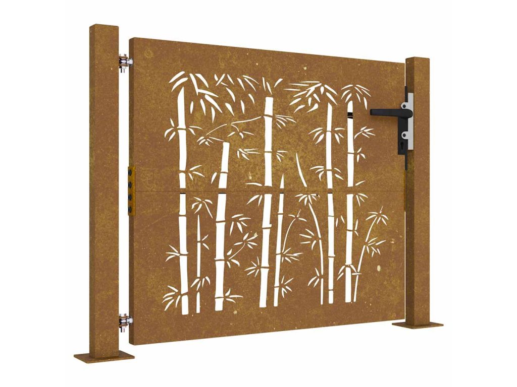 Zahradní branka 105 x 105 cm cortenová ocel Bambus 153239