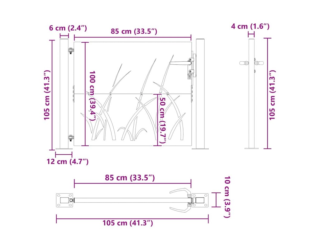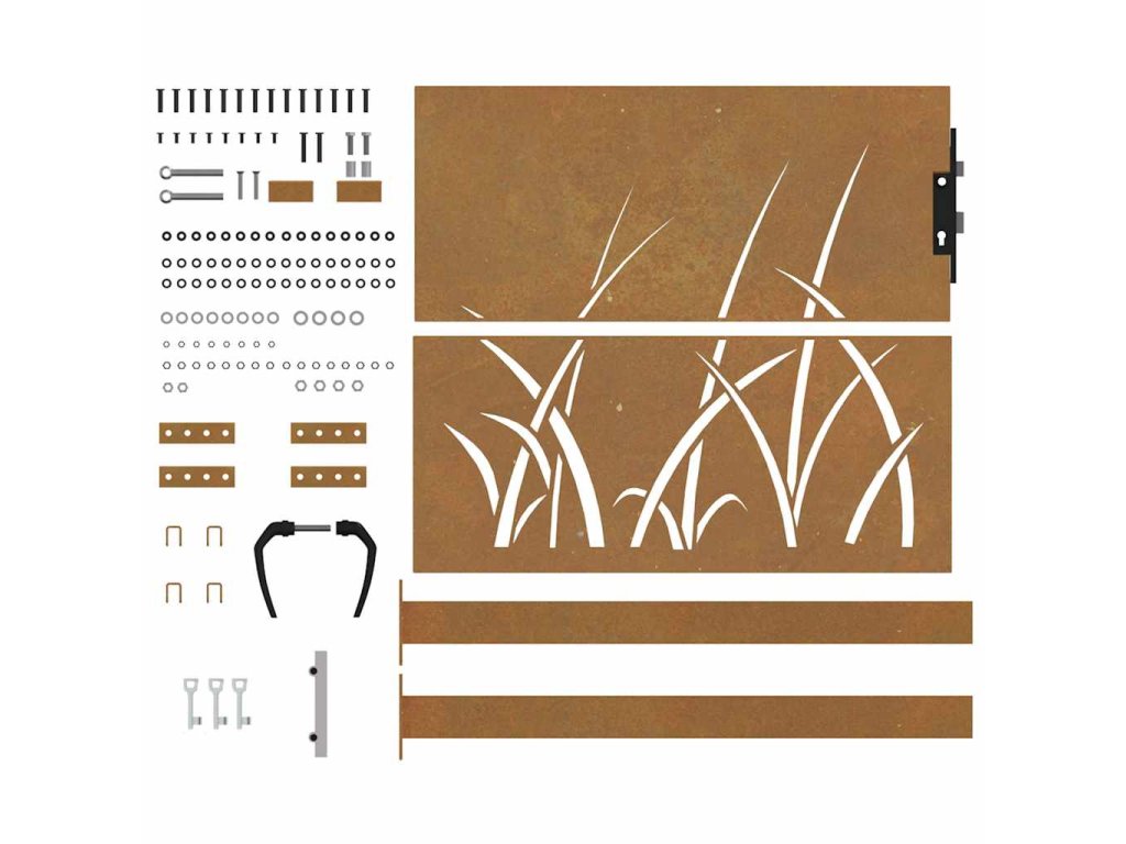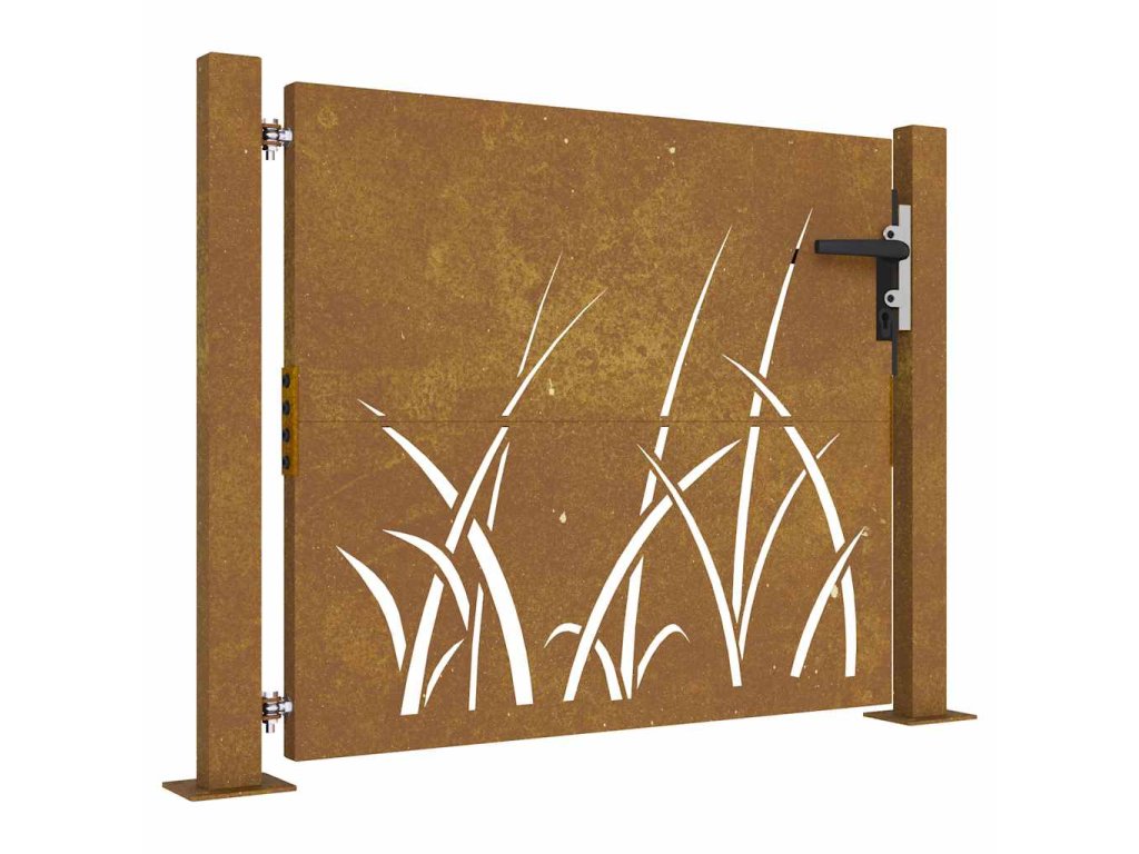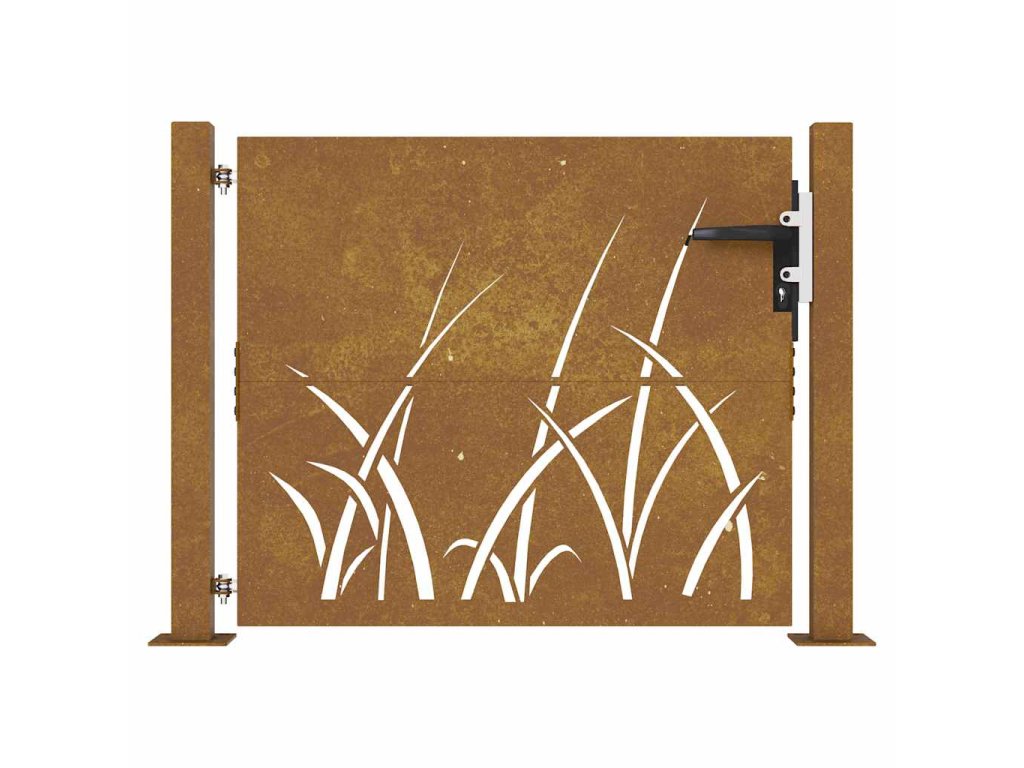 Zahradní branka 105 x 105 cm cortenová ocel Tráva 153227