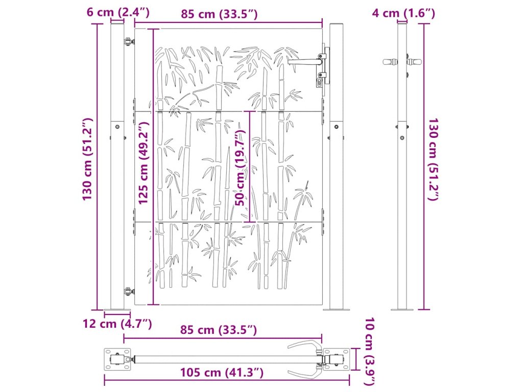 Zahradní branka 105 x 130 cm cortenová ocel Bambus 153240