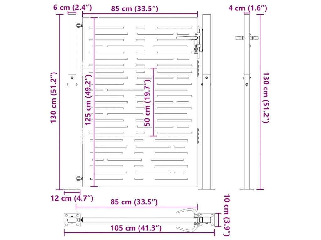 - Materiál s dlouhou životností: Kovová branka je vyrobená z cortenové oceli. Cortenová ocel, také známá jako povětrnostně odolná ocel. Je ze své podstaty antikorozní. Při prvním vystavení atmosférickým podmínkám se na ní vytvoří rezavá ochranná vrstva proti korozi. Nemusíte ji tedy natírat. Tím ušetříte náklady na údržbu a opravy. Výrazný hnědý odstín cortenové oceli jistě upoutá pozornost. Povětrnostně odolná ocel je výjimečně odolná a obstojí ve zkoušce času.