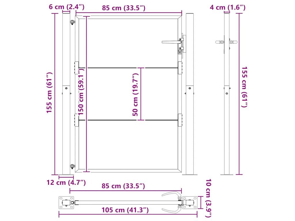 - Snadná montáž: Vstupní branka je dodávána se dvěma sloupky s přírubami a montážním příslušenstvím pro snadnou instalaci.