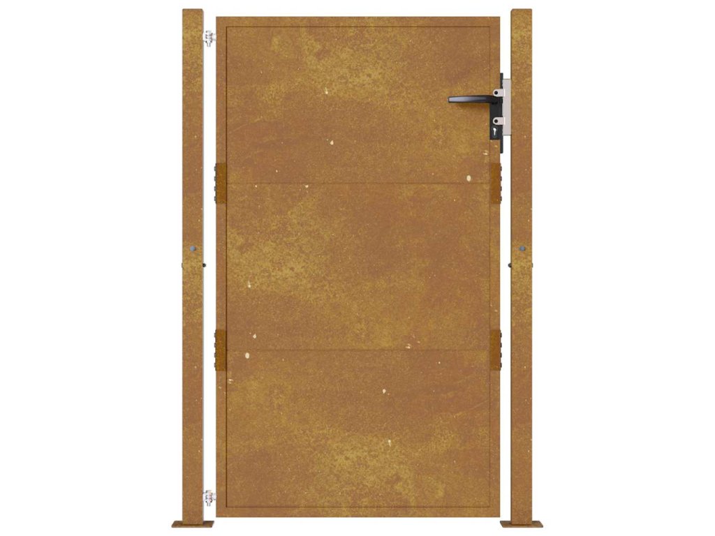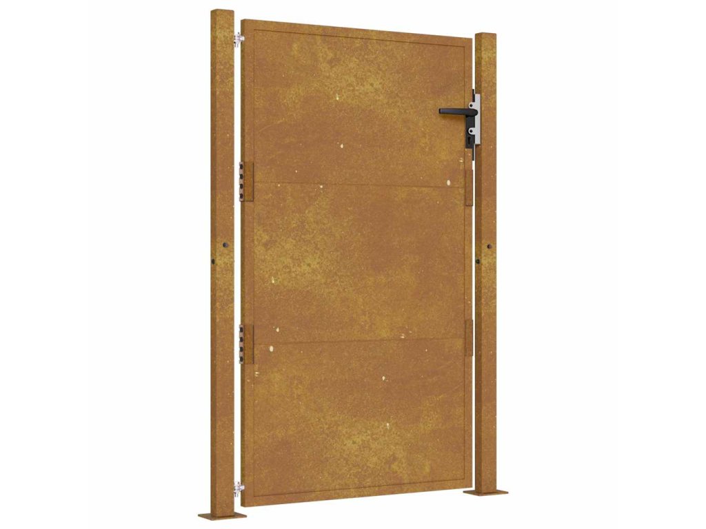 - Odolná konstrukce: Tato zahradní branka je vyrobená z cortenové oceli. Cortenová ocel, také známá jako povětrnostně odolná ocel. Je ze své podstaty antikorozní. Při prvním vystavení atmosférickým podmínkám se na ní vytvoří rezavá ochranná vrstva proti korozi. Nemusíte ji tedy natírat. Tím ušetříte náklady na údržbu a opravy. Výrazný hnědý odstín cortenové oceli jistě upoutá pozornost. Povětrnostně odolná ocel je výjimečně odolná a obstojí ve zkoušce času.