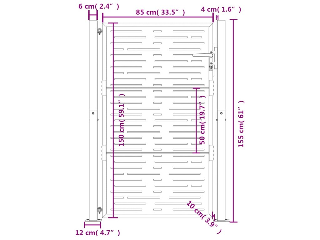 - Odolná konstrukce: Tato zahradní branka je vyrobená z cortenové oceli. Cortenová ocel, také známá jako povětrnostně odolná ocel. Je ze své podstaty antikorozní. Při prvním vystavení atmosférickým podmínkám se na ní vytvoří rezavá ochranná vrstva proti korozi. Nemusíte ji tedy natírat. Tím ušetříte náklady na údržbu a opravy. Výrazný hnědý odstín cortenové oceli jistě upoutá pozornost. Povětrnostně odolná ocel je výjimečně odolná a obstojí ve zkoušce času.