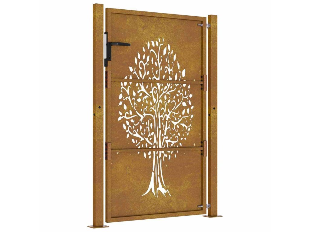 - Odolná konstrukce: Tato zahradní branka je vyrobená z cortenové oceli. Cortenová ocel, také známá jako povětrnostně odolná ocel. Je ze své podstaty antikorozní. Při prvním vystavení atmosférickým podmínkám se na ní vytvoří rezavá ochranná vrstva proti korozi. Nemusíte ji tedy natírat. Tím ušetříte náklady na údržbu a opravy. Výrazný hnědý odstín cortenové oceli jistě upoutá pozornost. Povětrnostně odolná ocel je výjimečně odolná a obstojí ve zkoušce času.