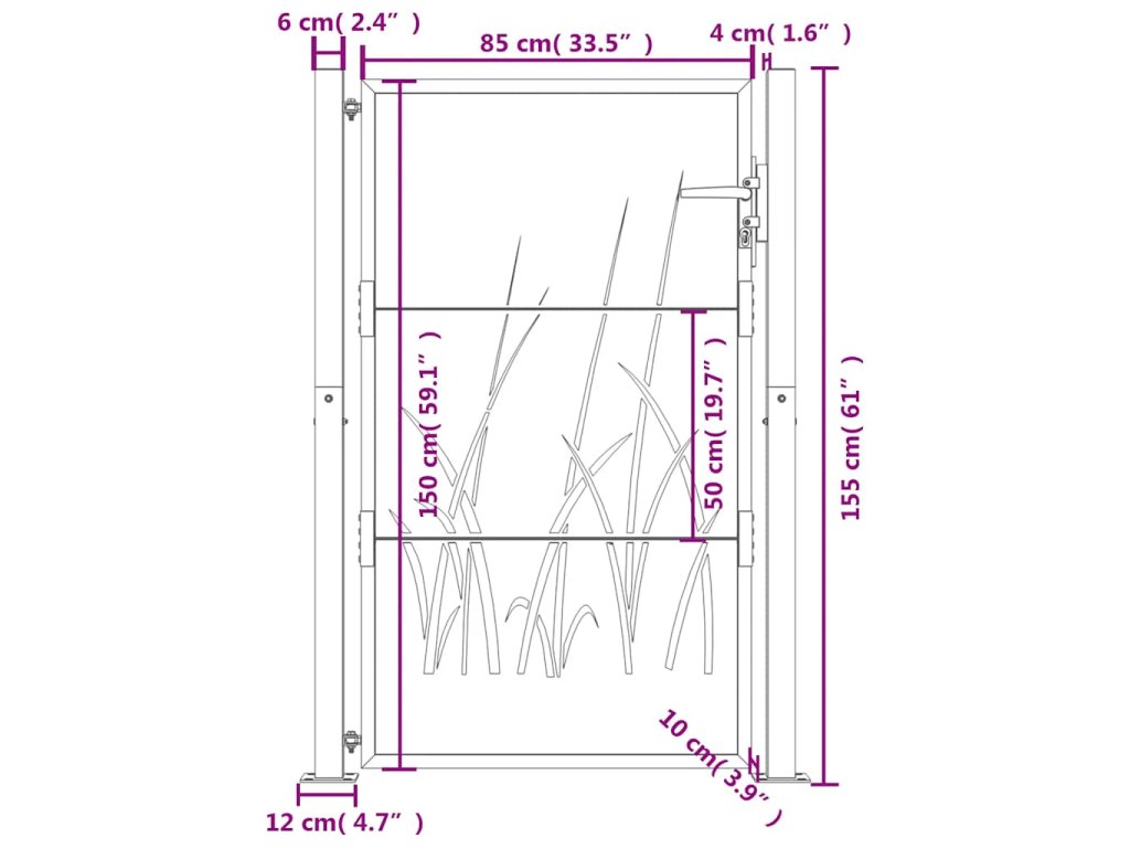 - Odolná konstrukce: Tato zahradní branka je vyrobená z cortenové oceli. Cortenová ocel, také známá jako povětrnostně odolná ocel. Je ze své podstaty antikorozní. Při prvním vystavení atmosférickým podmínkám se na ní vytvoří rezavá ochranná vrstva proti korozi. Nemusíte ji tedy natírat. Tím ušetříte náklady na údržbu a opravy. Výrazný hnědý odstín cortenové oceli jistě upoutá pozornost. Povětrnostně odolná ocel je výjimečně odolná a obstojí ve zkoušce času.