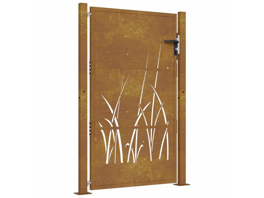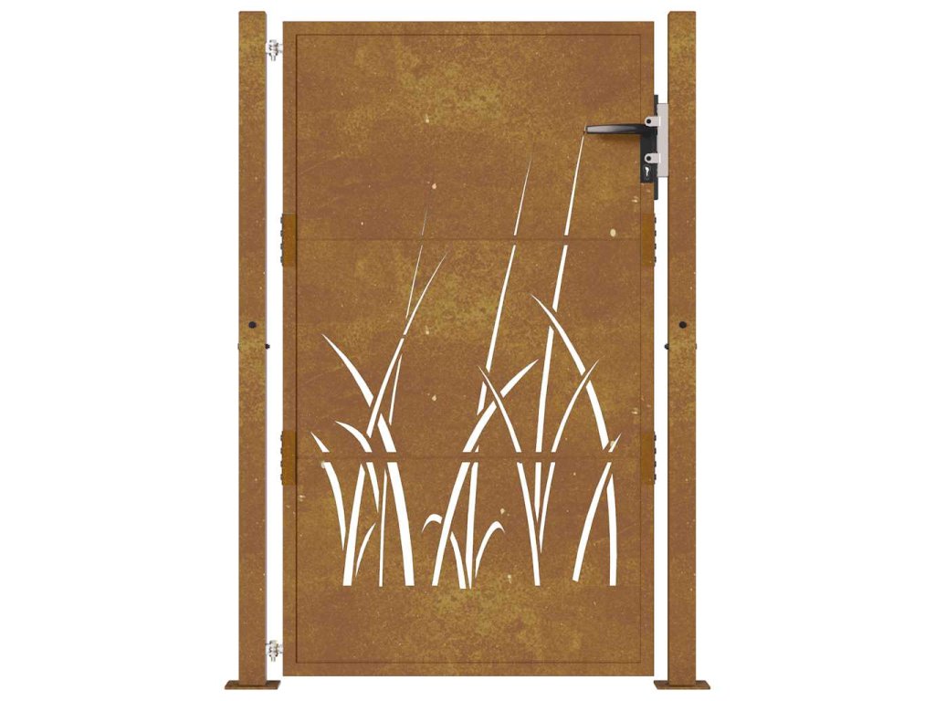 Zahradní branka 105 x 155 cm cortenová ocel Tráva 153175