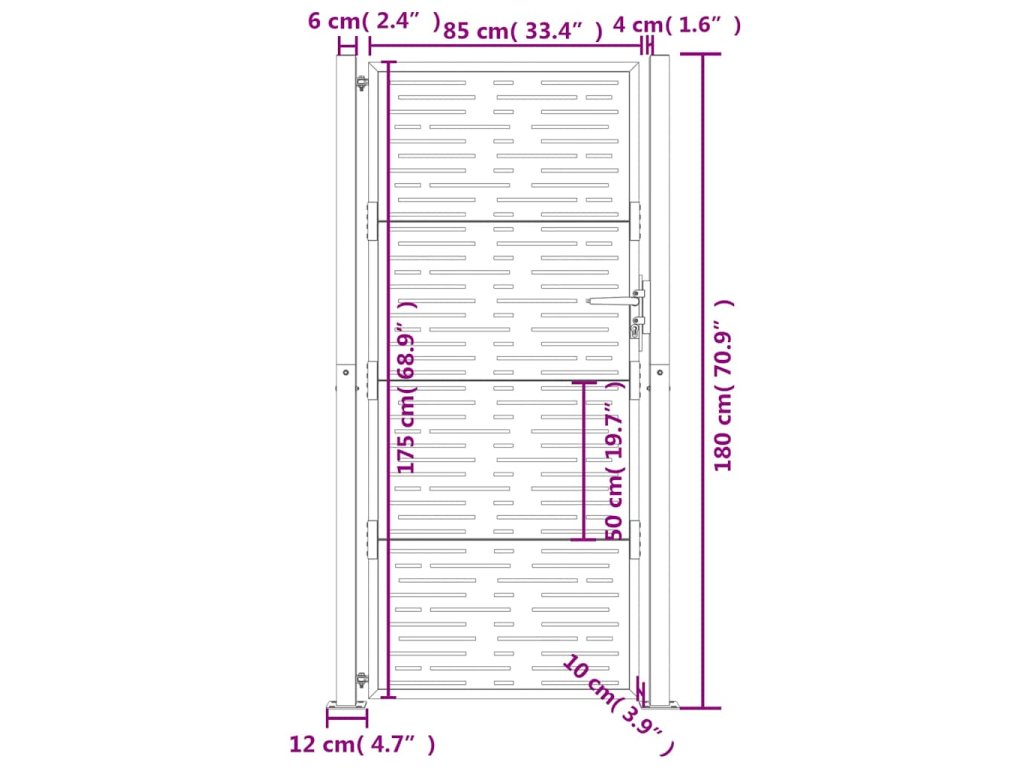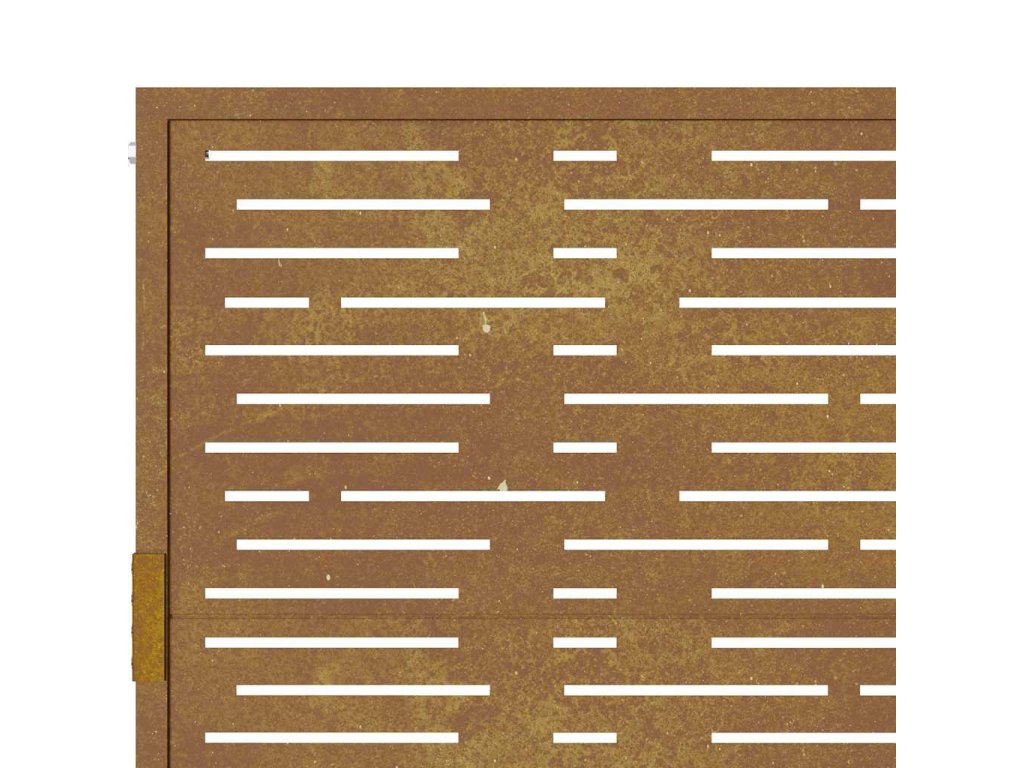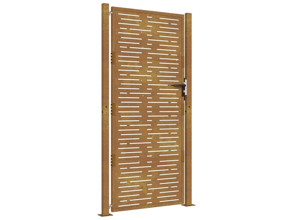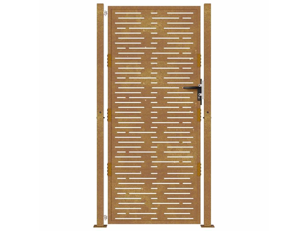 - Odolná konstrukce: Tato zahradní branka je vyrobená z cortenové oceli. Cortenová ocel, také známá jako povětrnostně odolná ocel. Je ze své podstaty antikorozní. Při prvním vystavení atmosférickým podmínkám se na ní vytvoří rezavá ochranná vrstva proti korozi. Nemusíte ji tedy natírat. Tím ušetříte náklady na údržbu a opravy. Výrazný hnědý odstín cortenové oceli jistě upoutá pozornost. Povětrnostně odolná ocel je výjimečně odolná a obstojí ve zkoušce času.