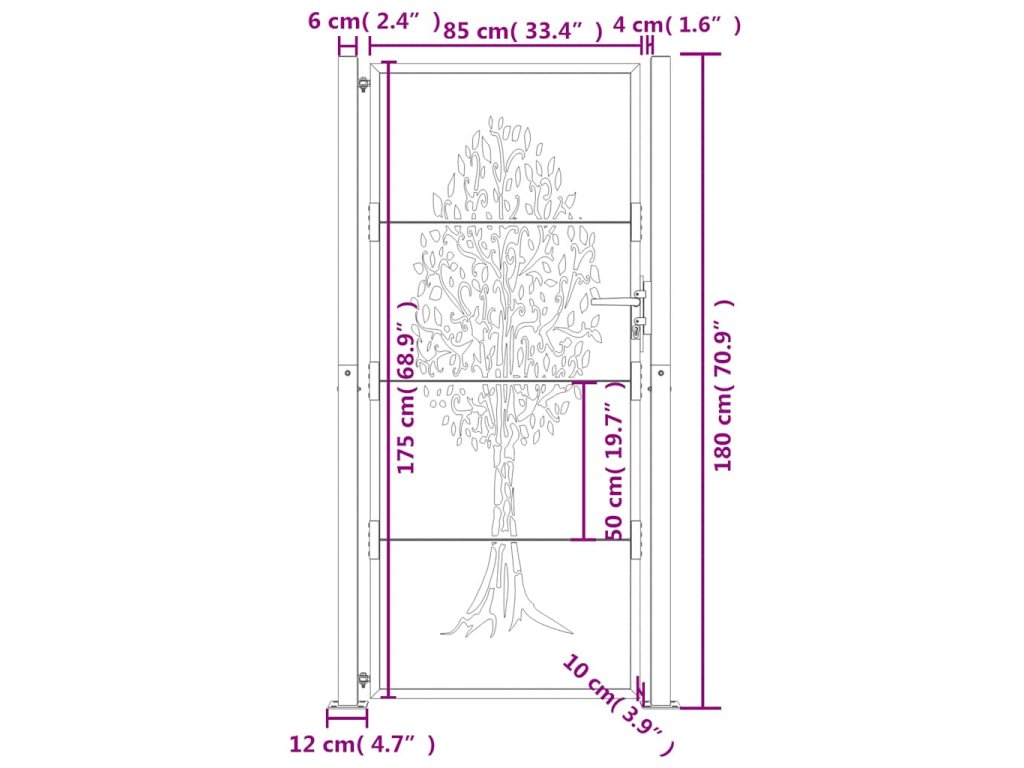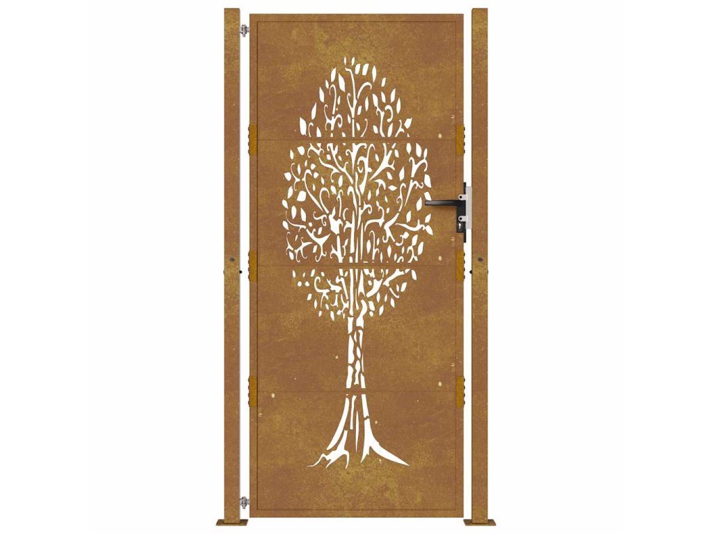 Zahradní branka 105 x 180 cm cortenová ocel Strom 153164
