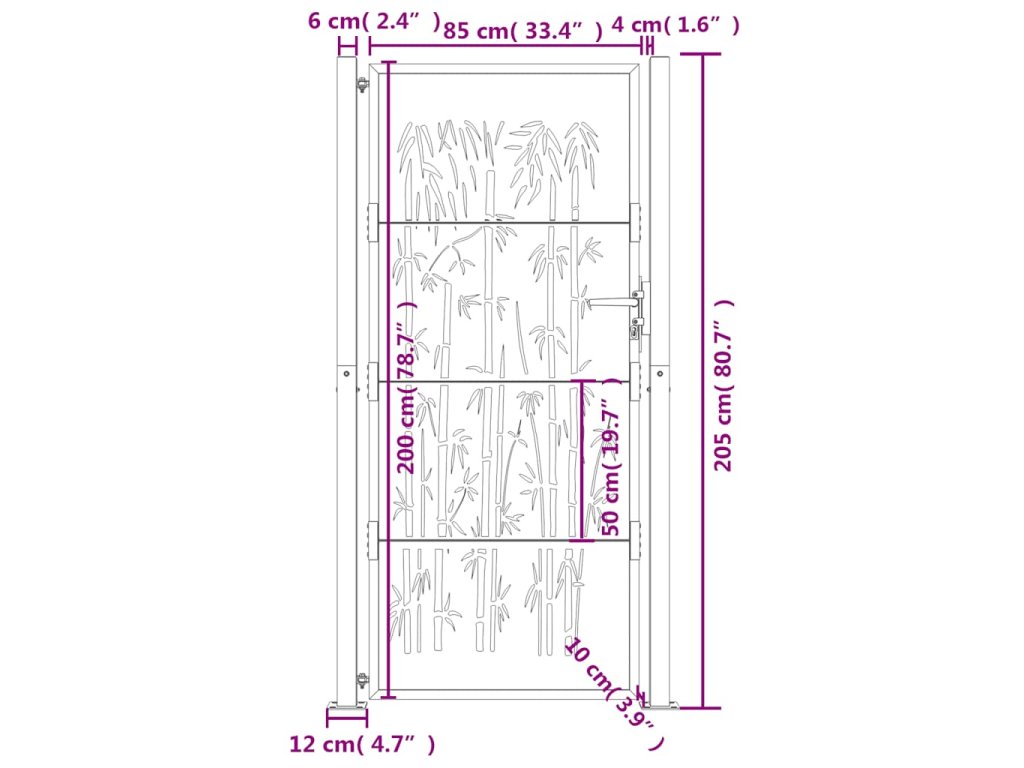 Zahradní branka 105 x 205 cm cortenová ocel Bambus 153189