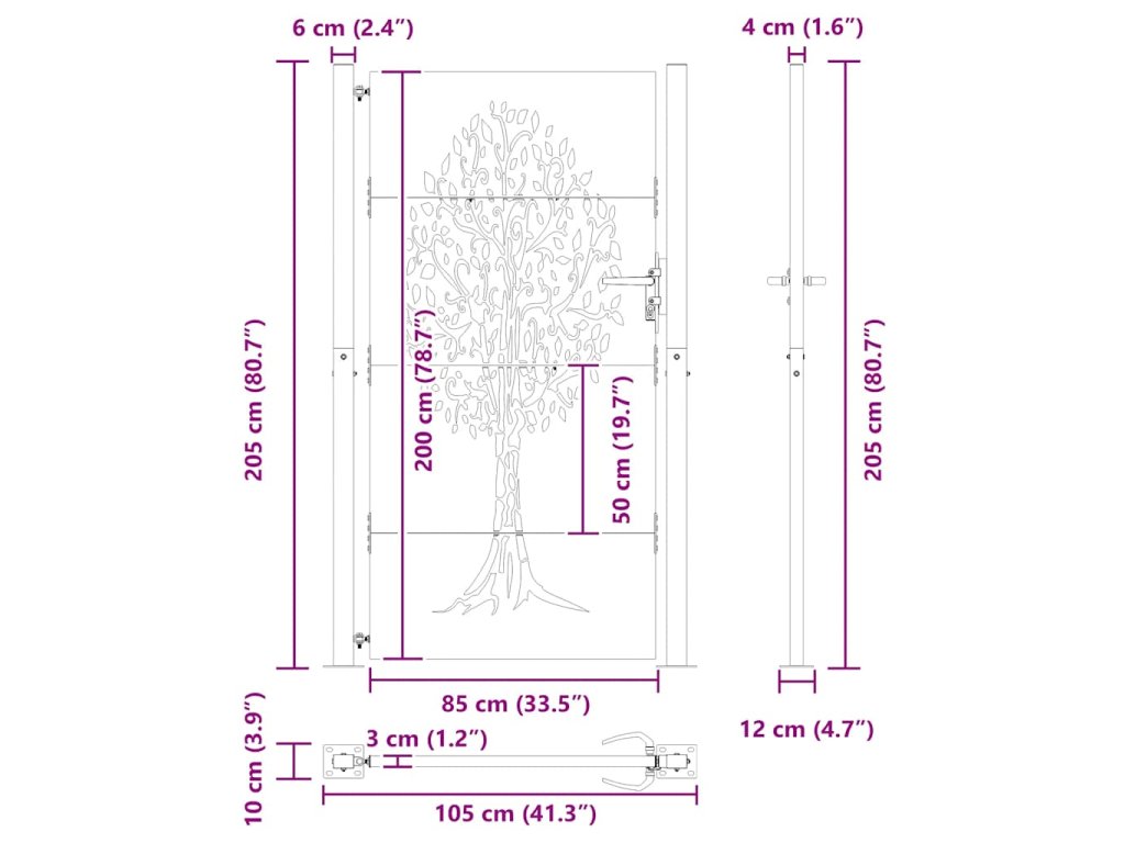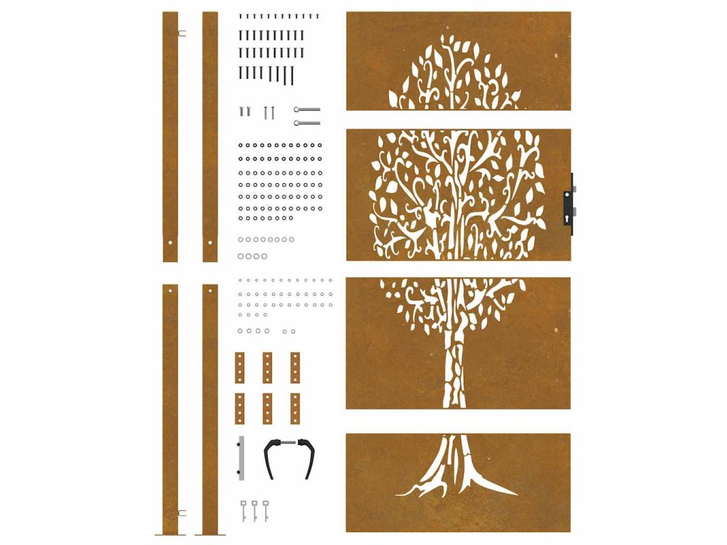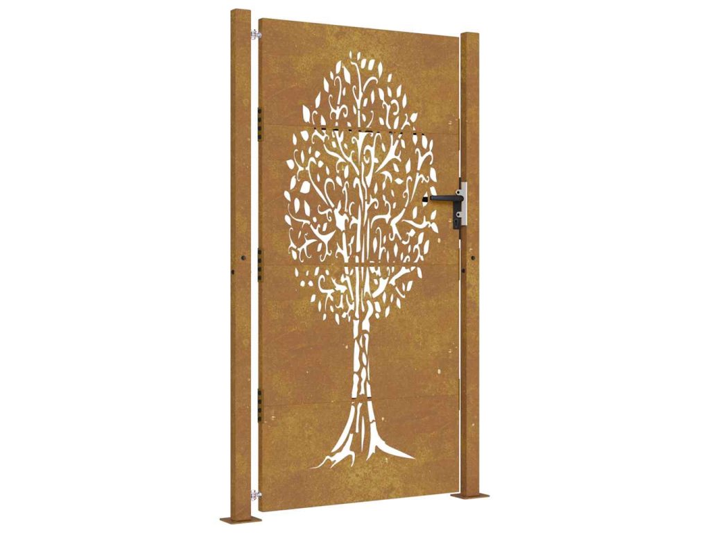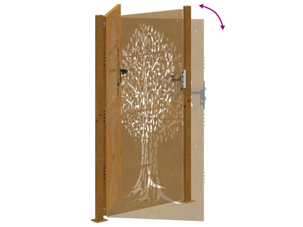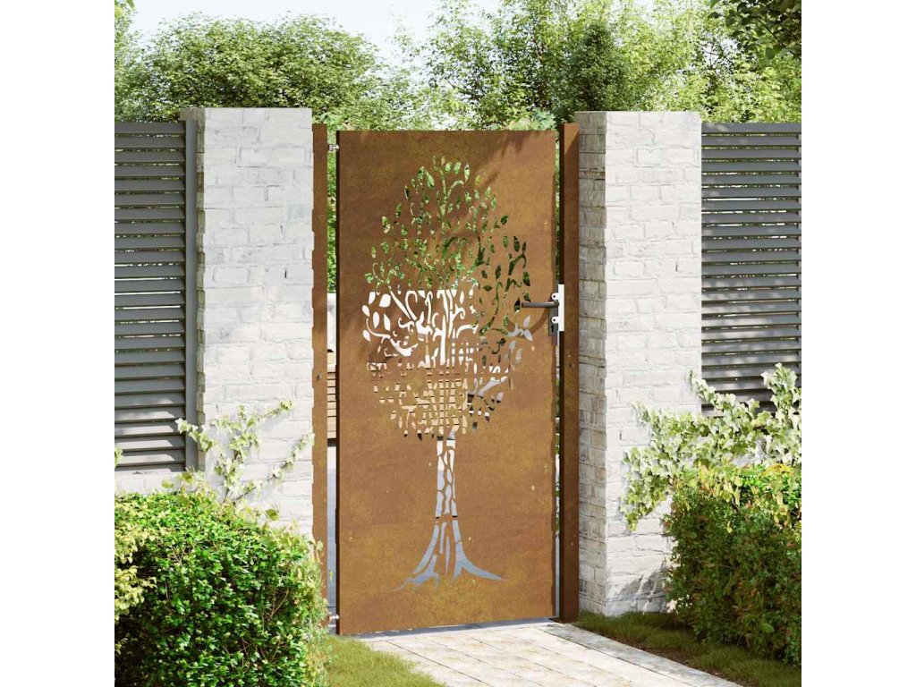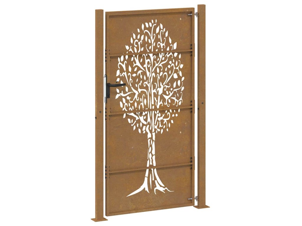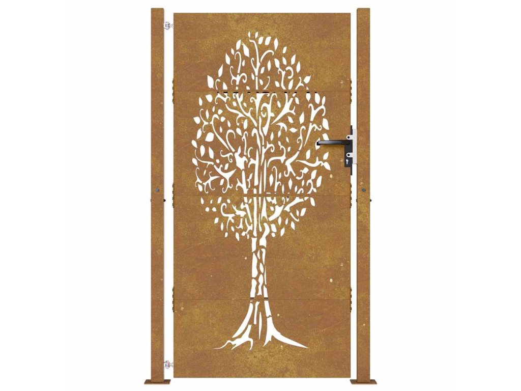 Zahradní branka 105 x 205 cm cortenová ocel design stromu 153219