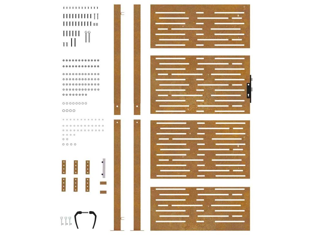 - Materiál s dlouhou životností: Kovová branka je vyrobená z cortenové oceli. Cortenová ocel, také známá jako povětrnostně odolná ocel. Je ze své podstaty antikorozní. Při prvním vystavení atmosférickým podmínkám se na ní vytvoří rezavá ochranná vrstva proti korozi. Nemusíte ji tedy natírat. Tím ušetříte náklady na údržbu a opravy. Výrazný hnědý odstín cortenové oceli jistě upoutá pozornost. Povětrnostně odolná ocel je výjimečně odolná a obstojí ve zkoušce času.