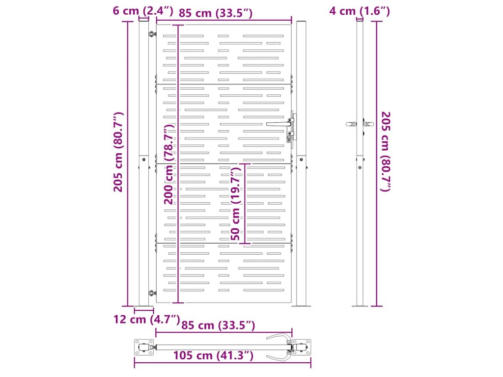 Zahradní branka 105 x 205 cm cortenová ocel Pruhy 153255