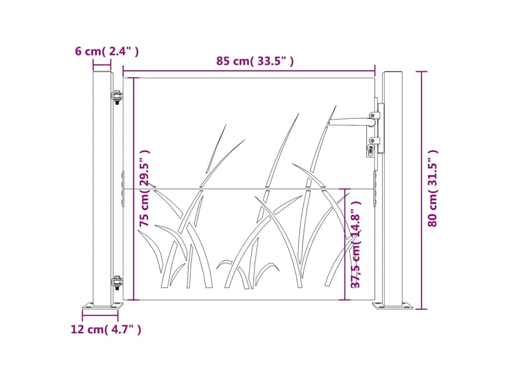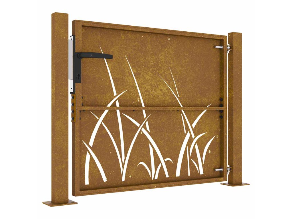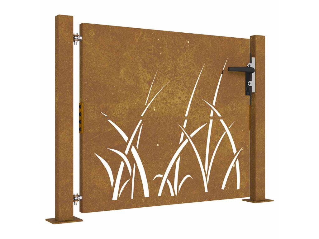 Zahradní branka 105 x 80 cm cortenová ocel Tráva 153226