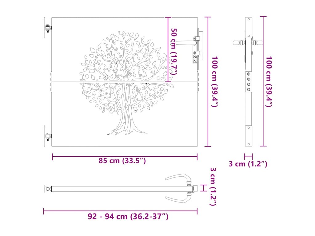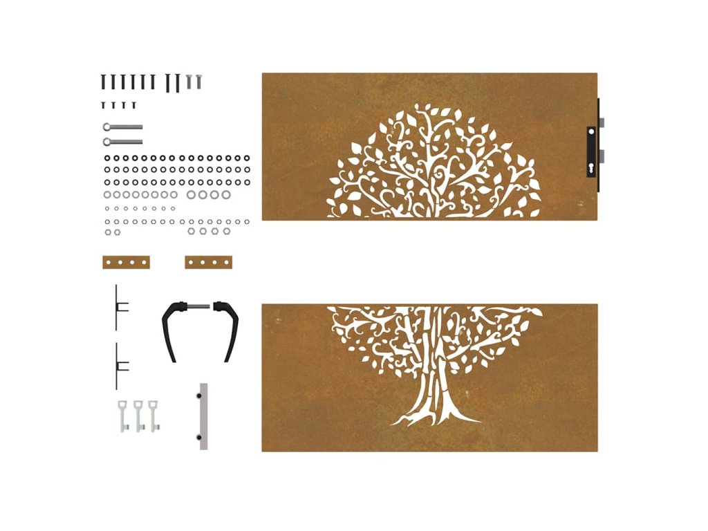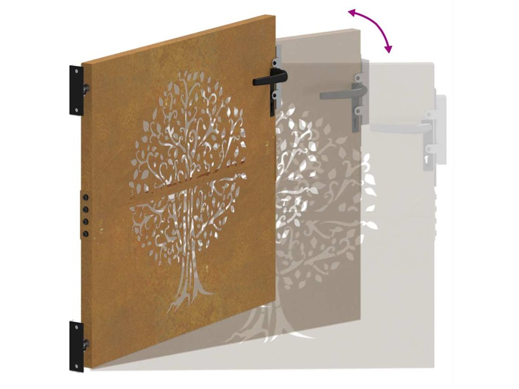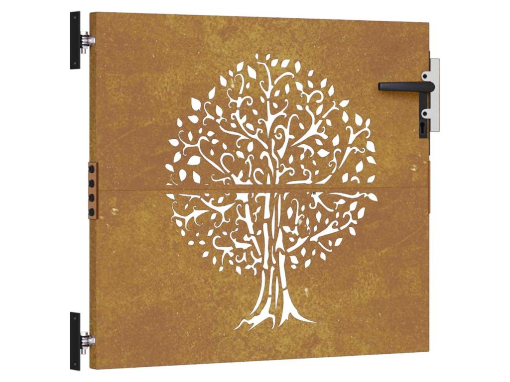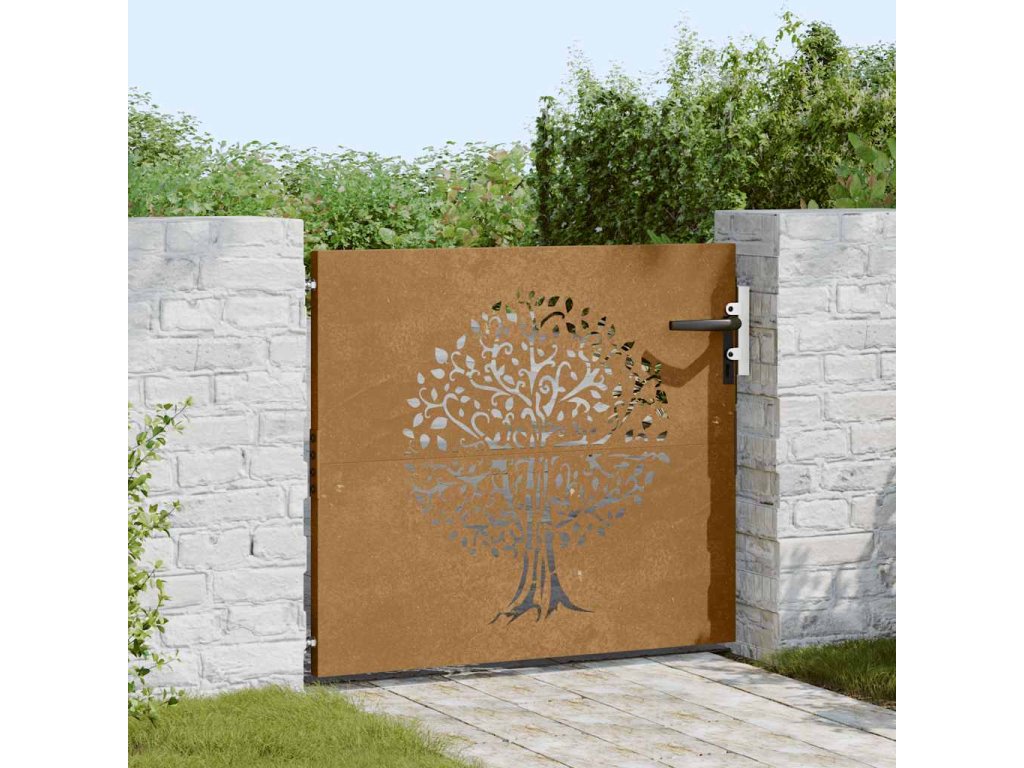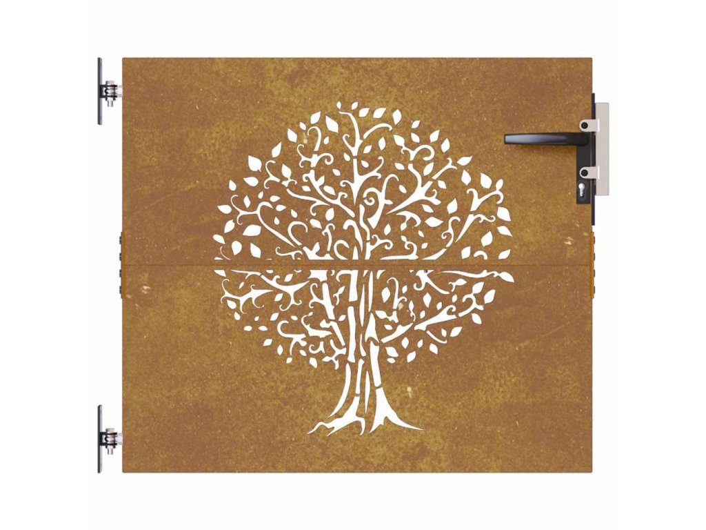 Zahradní branka 85 x 100 cm cortenová ocel Strom 153209
