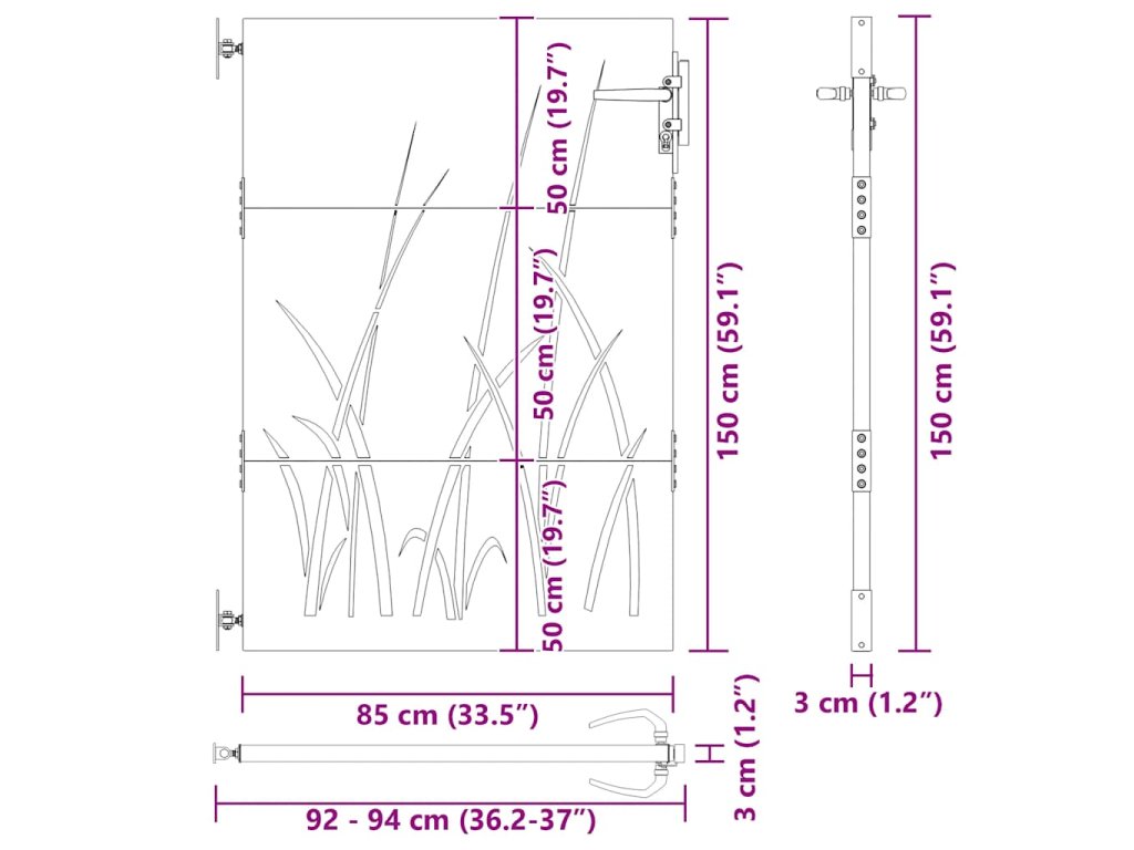 Zahradní branka 85 x 150 cm cortenová ocel Tráva 153223