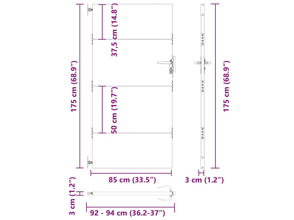 Zahradní branka 85 x 175 cm cortenová ocel 153260