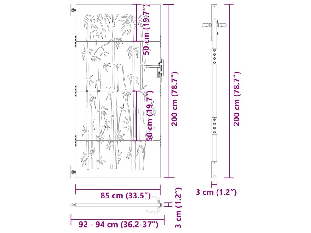 Zahradní branka 85 x 200 cm cortenová ocel Bambus 153237