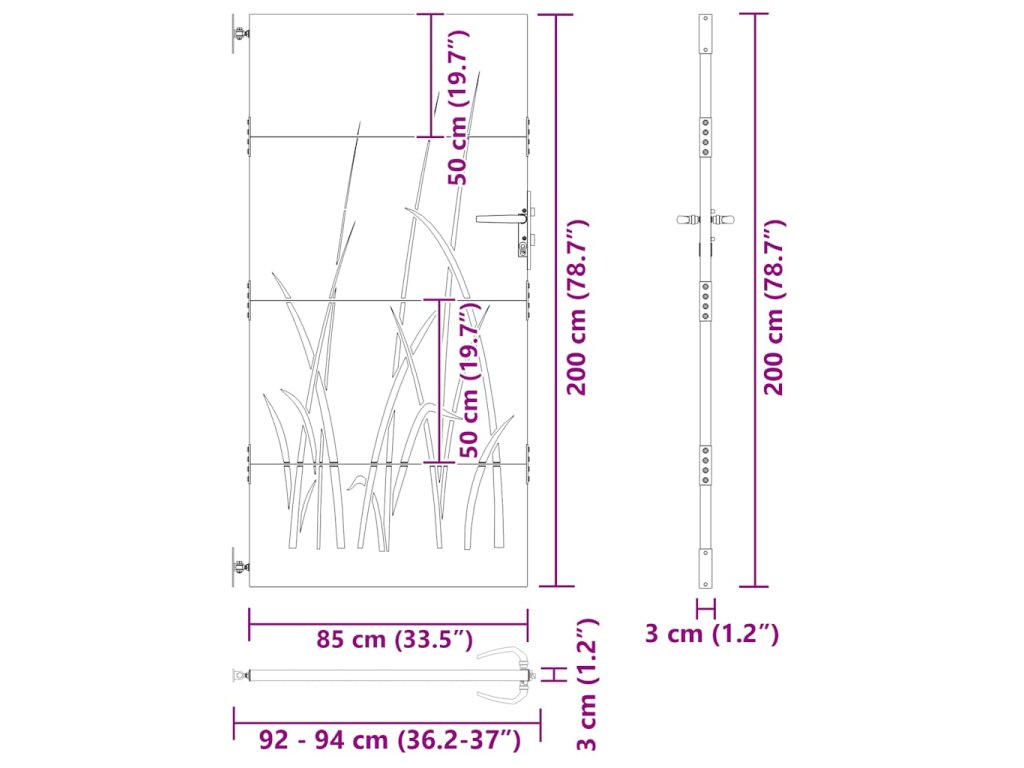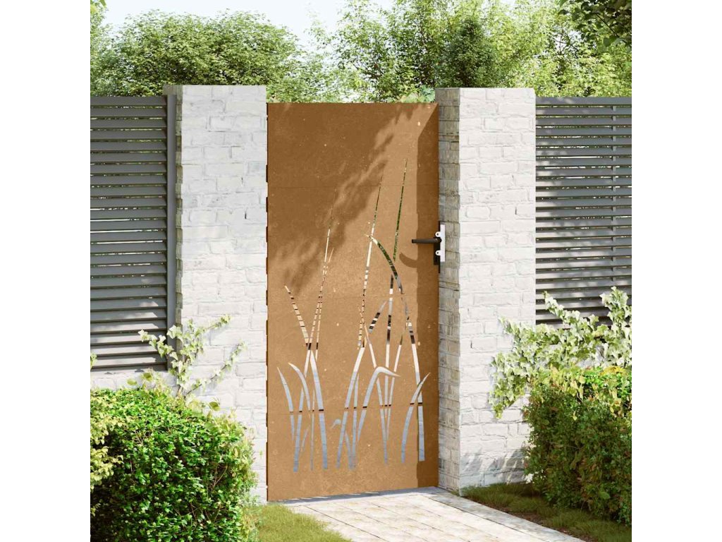 Zahradní branka 85 x 200 cm cortenová ocel Tráva 153225