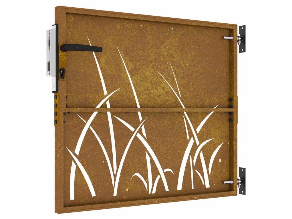 - Materiál s dlouhou životností: Kovová branka je vyrobená z cortenové oceli. Cortenová ocel, také známá jako povětrnostně odolná ocel. Je ze své podstaty antikorozní. Při prvním vystavení atmosférickým podmínkám se na ní vytvoří rezavá ochranná vrstva proti korozi. Nemusíte ji tedy natírat. Tím ušetříte náklady na údržbu a opravy. Výrazný hnědý odstín cortenové oceli jistě upoutá pozornost. Povětrnostně odolná ocel je výjimečně odolná a obstojí ve zkoušce času.