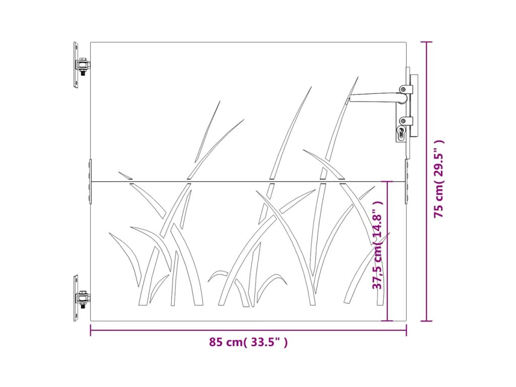 Zahradní branka 85 x 75 cm cortenová ocel Tráva 153220