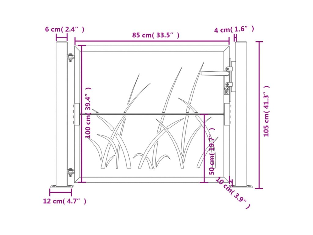 - Snadná montáž: Vstupní branka je dodávána se dvěma sloupky s přírubami a montážním příslušenstvím pro snadnou instalaci.