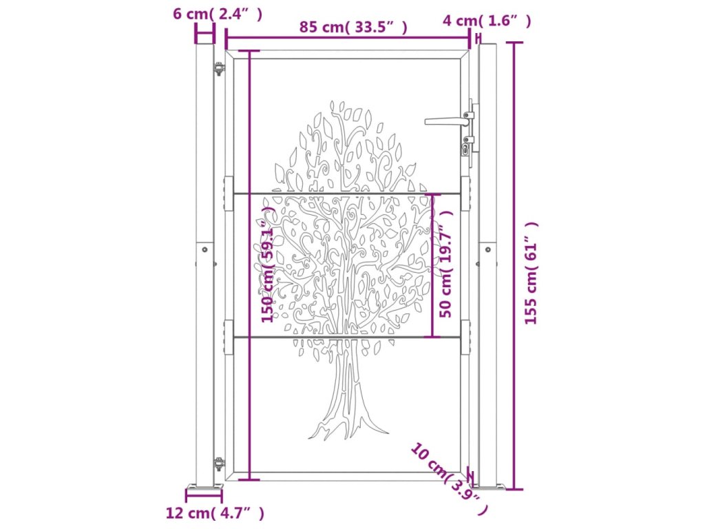 Zahradní branka antracitová 105 x 155 cm ocel Strom 153157
