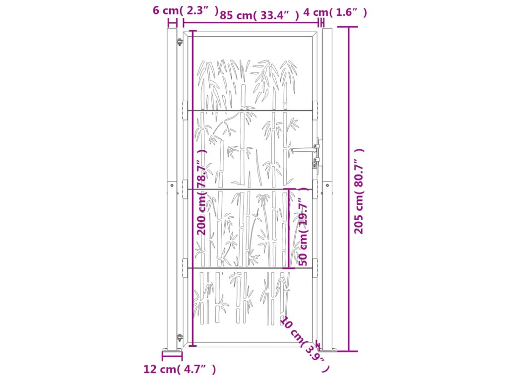 Zahradní branka antracitová 105 x 205 cm ocel Bambus 153183