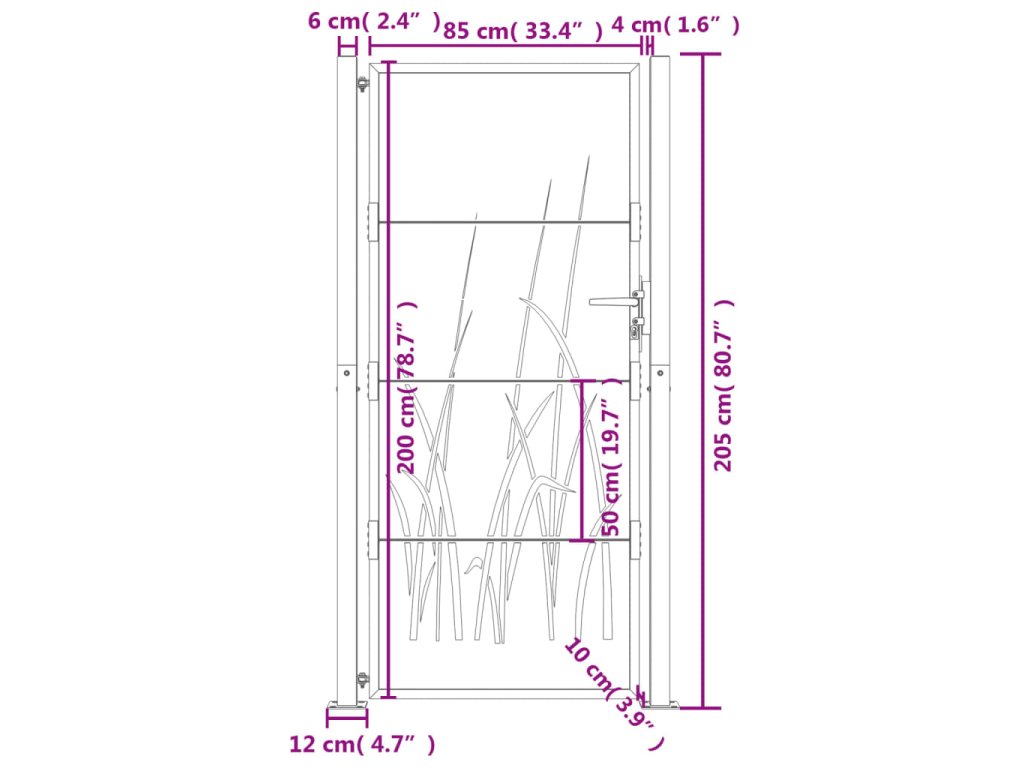 Zahradní branka antracitová 105 x 205 cm ocel Tráva 153171