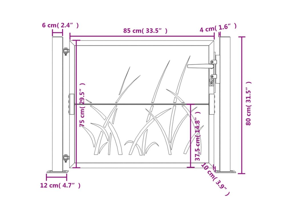 Zahradní branka antracitová 105 x 80 cm ocel Tráva 153166