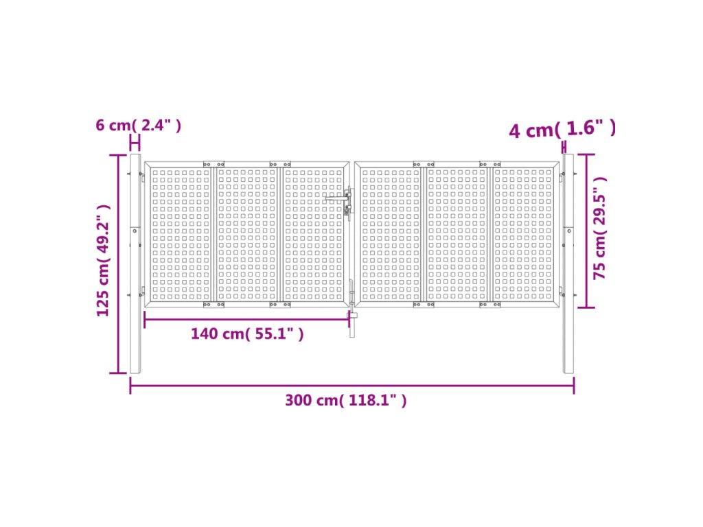 Zahradní branka antracitová 300 x 125 cm ocel 154565