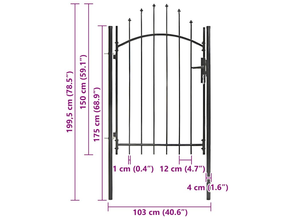 Elegantní zaoblený design naší branky je velmi atraktivní. Silné vodorovné příčky zpevňují její rám a zvyšují její bezpečnost. Naše branka tak tvoří nejen působivý vstup na váš pozemek, ale také spolehlivou bariéru. Je vyrobená z vysoce odolné oceli a ošetřená práškovým lakem, který ji chrání před rzí a korozí. Zahradní branka je rovněž vybavena zamykacím systémem. Dodáváme ji spolu se dvěma robustními sloupky s pevnými závěsy pro snadnou instalaci.