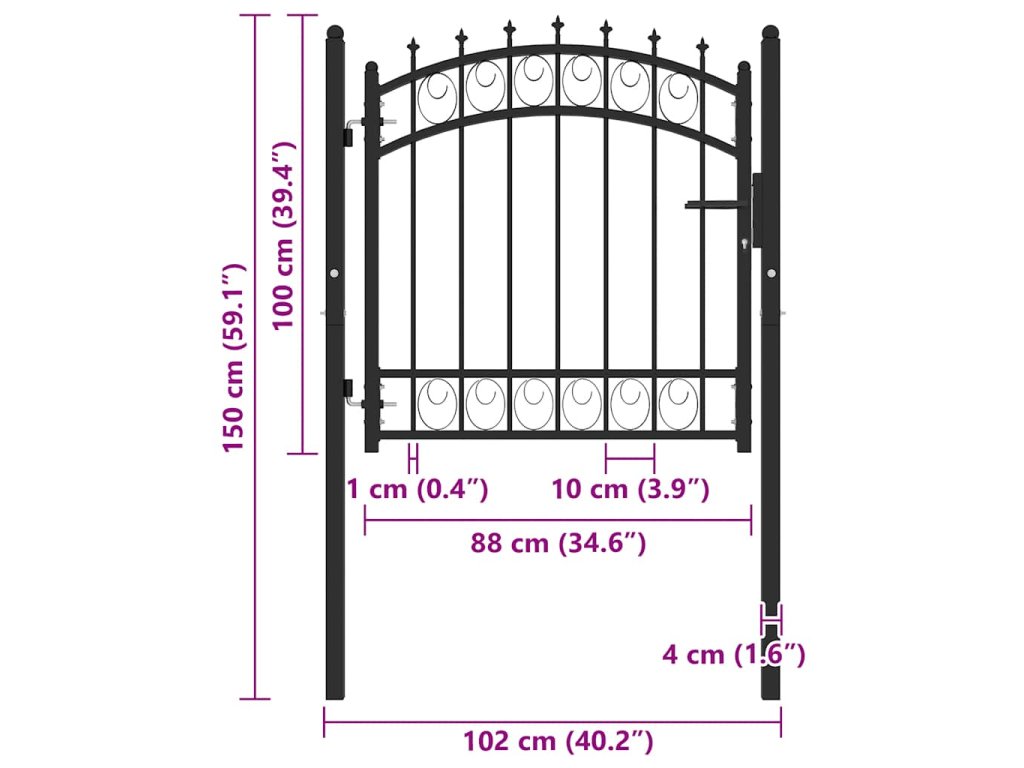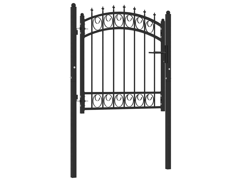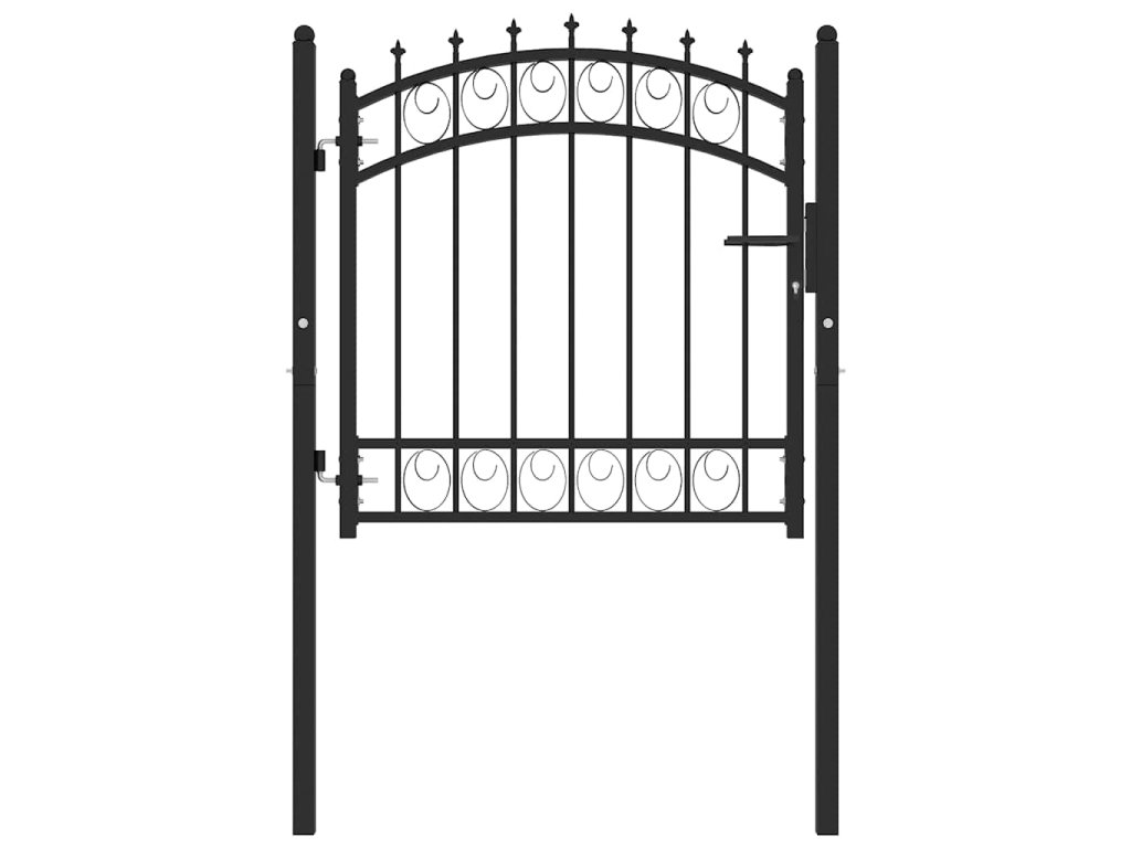 Plotová branka je vyrobená z vysoce odolné oceli, má robustní konstrukci s práškovým nástřikem proti rzi a korozi. Zahradní branka je vybavená vertikálním pruty zakončenými hroty a silnou vodorovnou výztuží, takže vám poskytne vysoký stupeň zabezpečení. Klenutý design jí dodává na eleganci. Součástí balení jsou dva pevné sloupky s robustními závěsy pro snadnou instalaci a také zámek se třemi klíči.