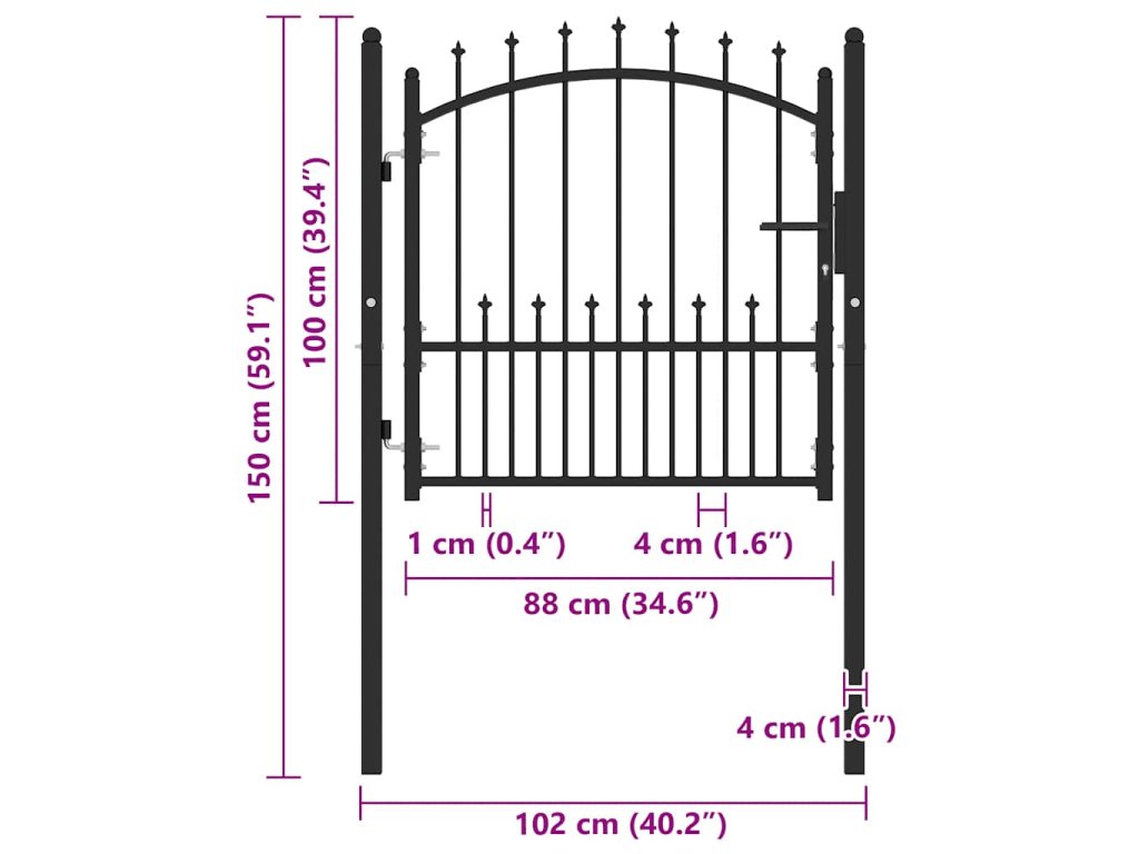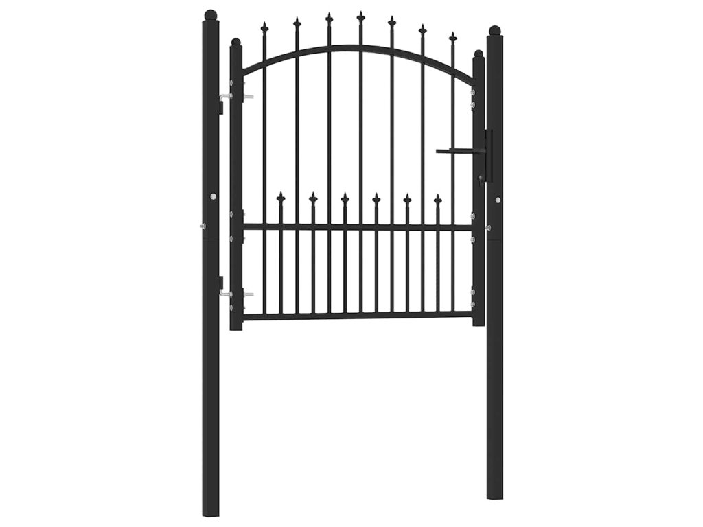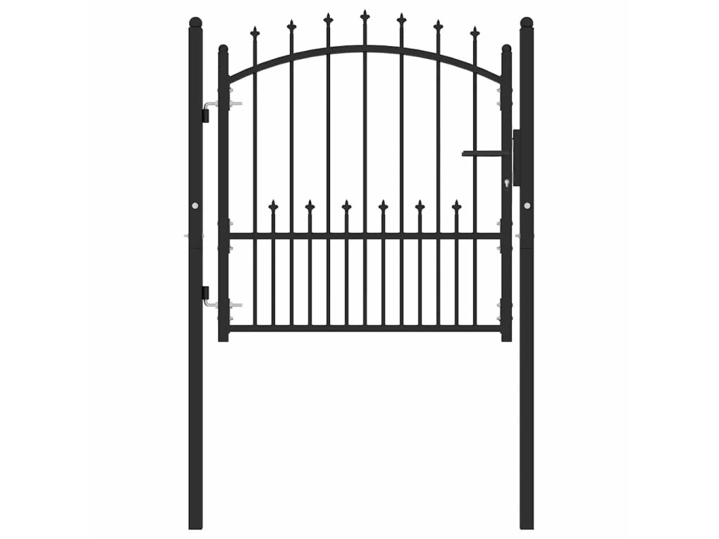 Plotová branka je vyrobená z vysoce odolné oceli, má robustní konstrukci s práškovým nástřikem proti rzi a korozi. Zahradní branka je vybavená vertikálním pruty zakončenými hroty a silnou vodorovnou výztuží, takže vám poskytne vysoký stupeň zabezpečení. Klenutý design jí dodává na eleganci. Součástí balení jsou dva pevné sloupky s robustními závěsy pro snadnou instalaci a také zámek se třemi klíči.